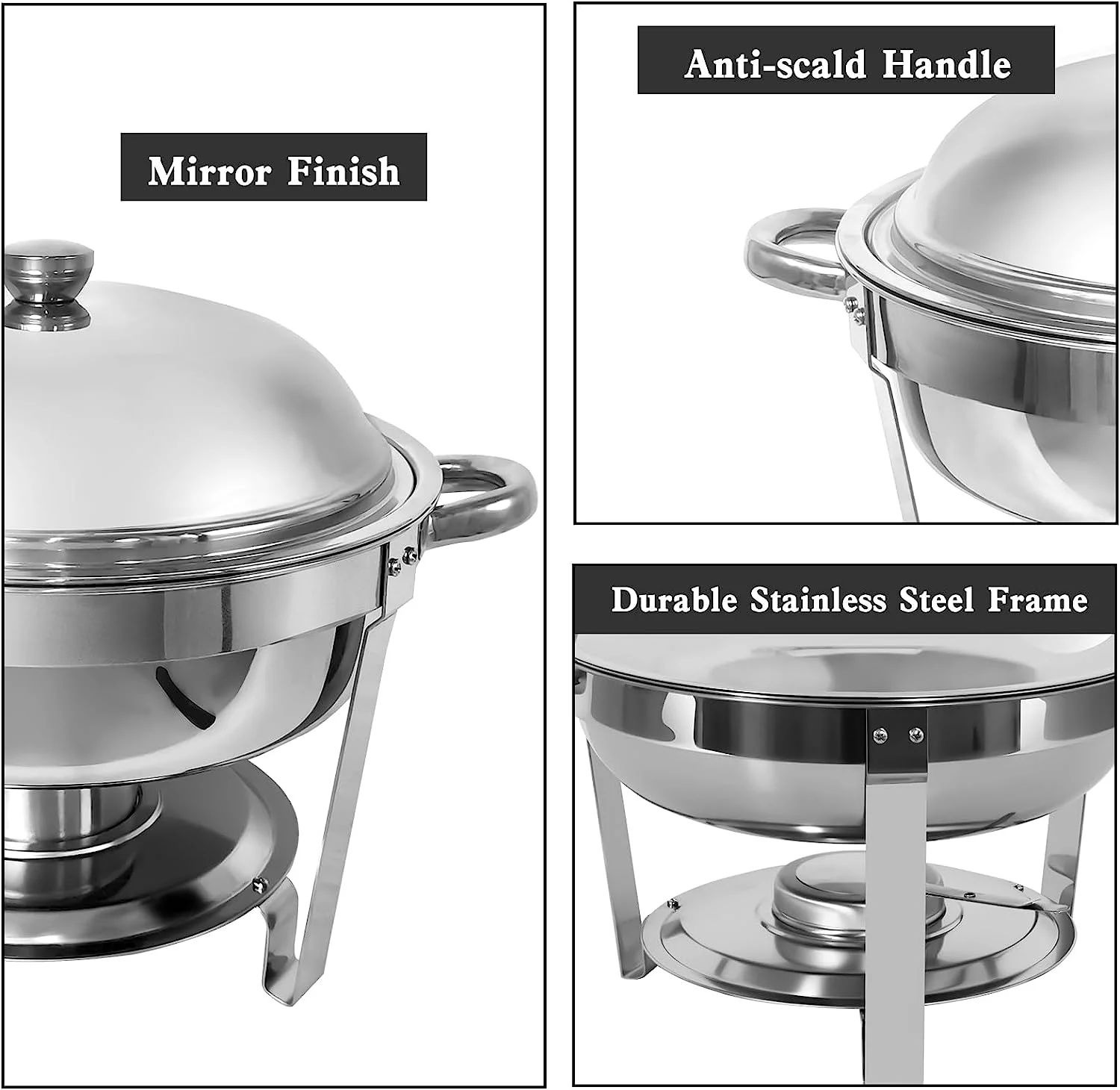 Jacgood 6 Qt Chafing Dish Buffet Set,4 pack Stainless Steel Round Chafers and Buffet Warmers Sets with Food and Water Trays for Catering - Curated Treasures Market