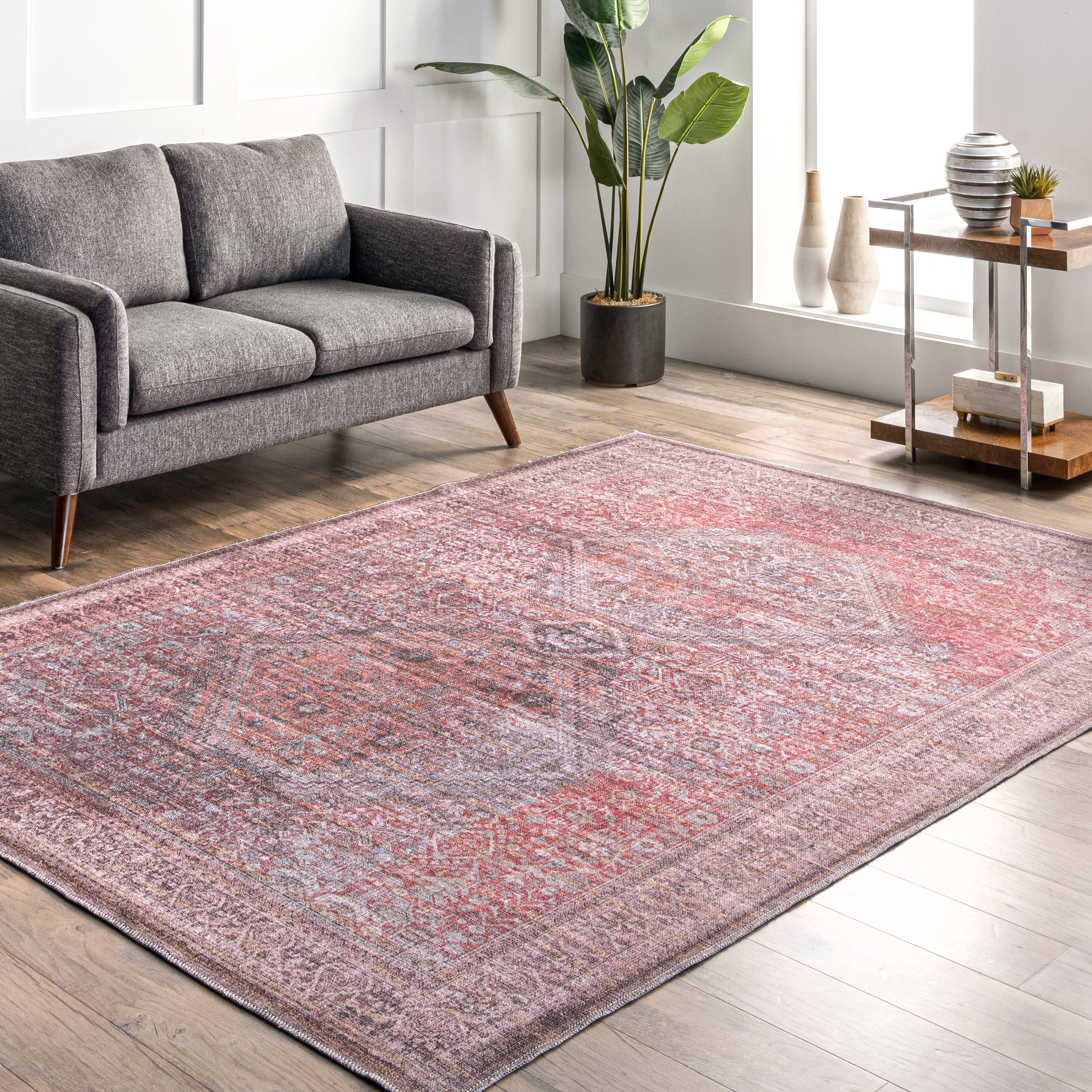 nuLOOM Justine Machine Washable Faded Geometric Medallion Area Rug, 7' x 9', Grey - Curated Treasures Market