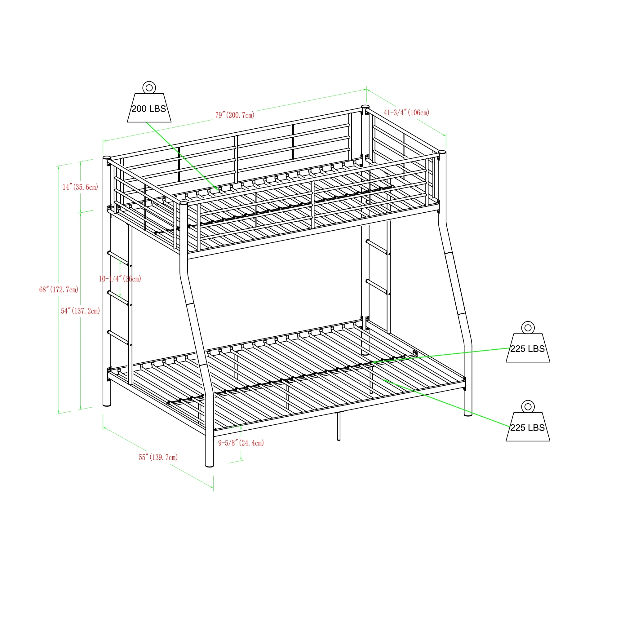 Walker Edison Premium Twin Over Full Metal Bunk Bed, Black - Curated Treasures Market
