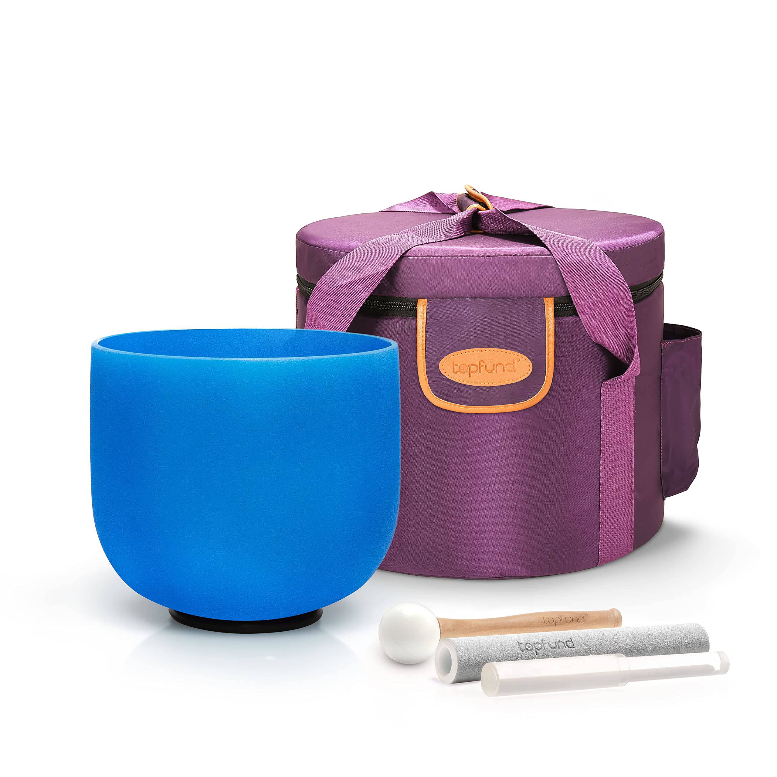 TOPFUND 440Hz Blue G Note 8 inch Crystal Singing Bowl Throat Chakra with Heavy Duty Carrying Case and Suede Stick - Curated Treasures Market