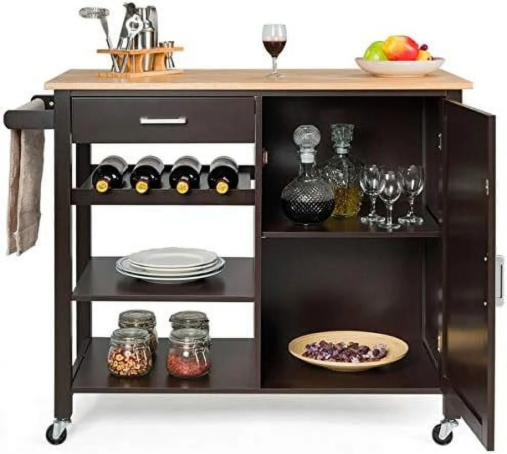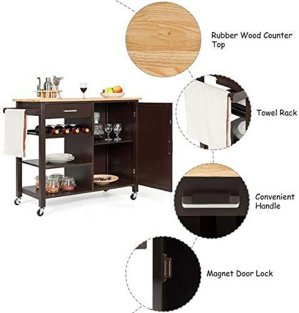 HYHBIBOOM Rolling Kitchen Trolley Cart Utility Kitchen Cart with Rubber Wood Top Towel Rack and Lockable Wheels Rolling Kitchen Island Cart Trolley Cabinet Towel Rack Drawer Shelves - Curated Treasures Market