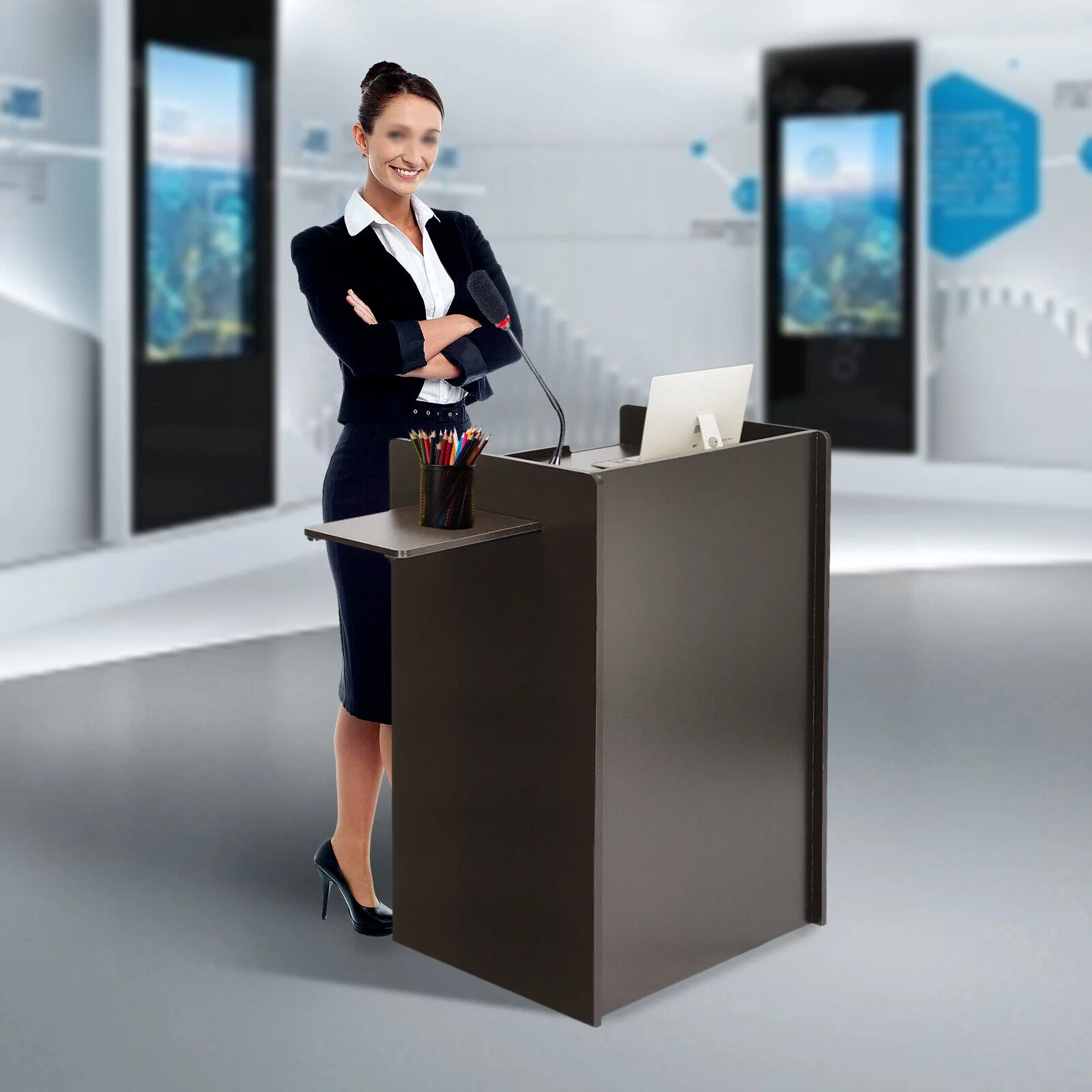 SHZICMY Mobile Floor Lectern with Side Shelf And Keyboard Tray, Black Rolling Podium - Curated Treasures Market