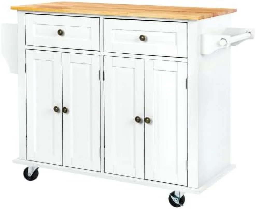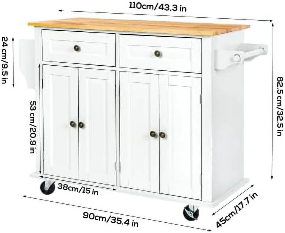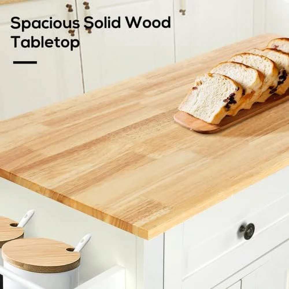CHYRFCV 43" Kitchen Island with Rolling Kitchen Cart with Lockable Wheels Solid Wood Tabletop Kitchen Island Table for Kitchen Living Room White - Curated Treasures Market