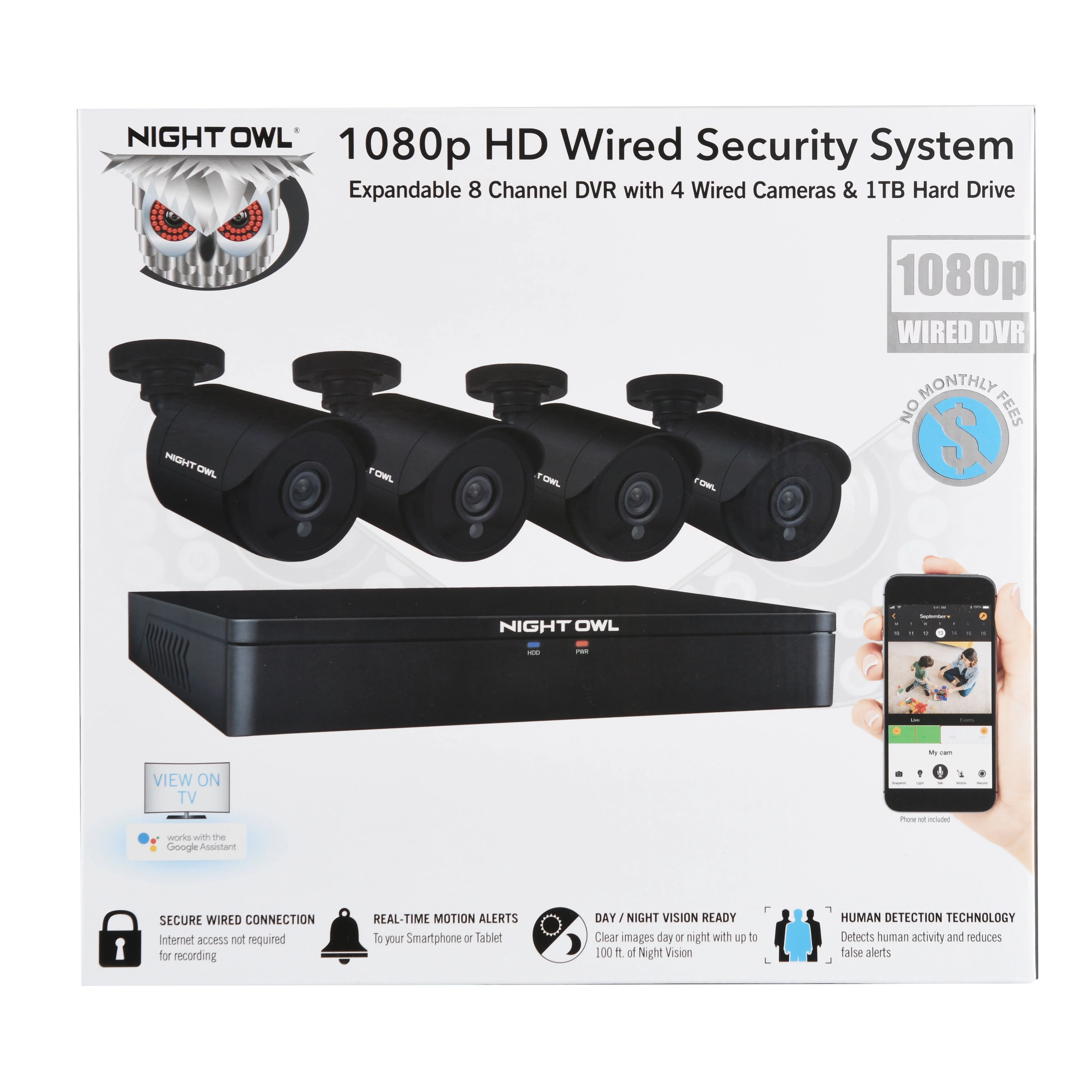 Night Owl 8 Channel 1080p DVR with Human Detection Technology, 1 TB HDD and 4 x 1080p Wired Cameras - Curated Treasures Market