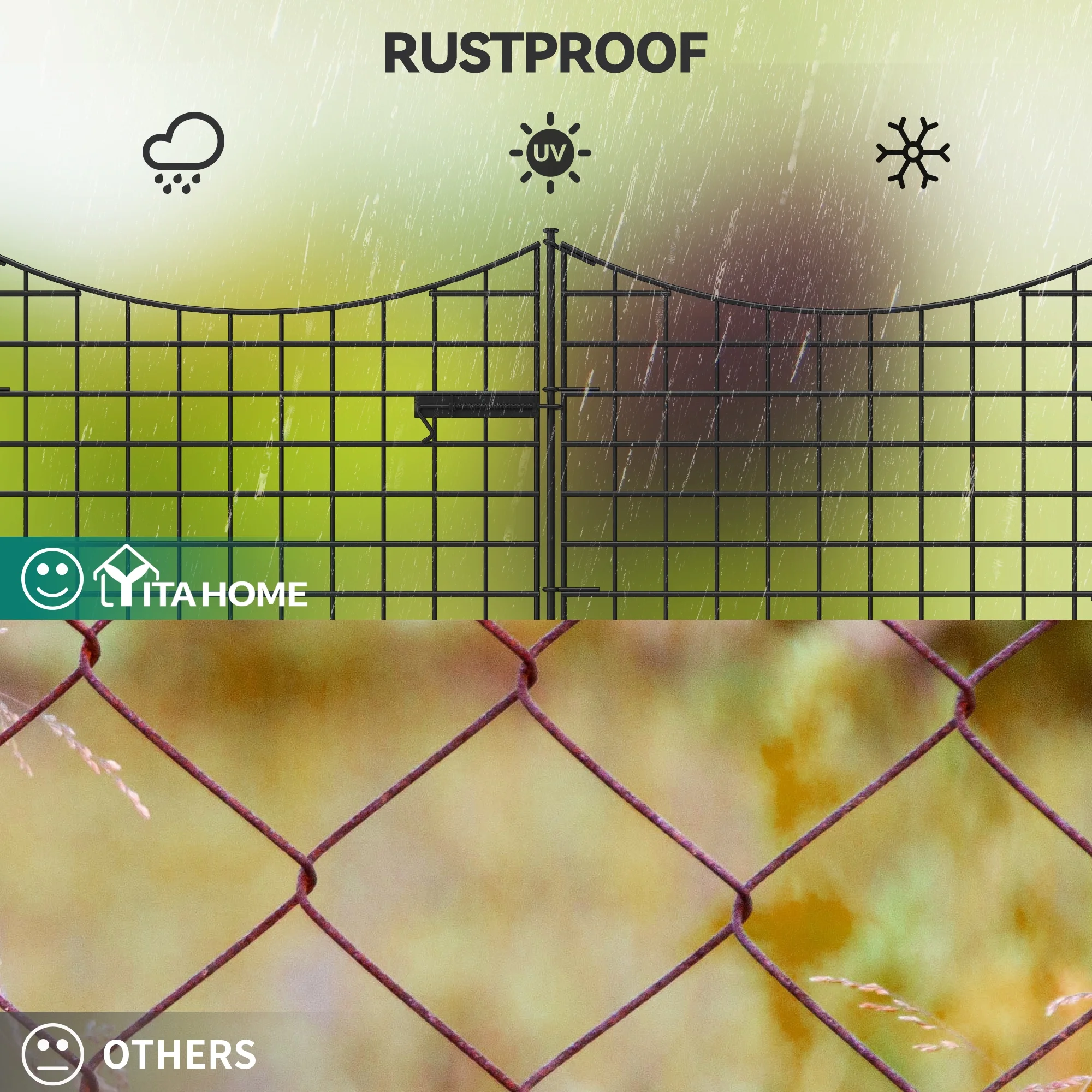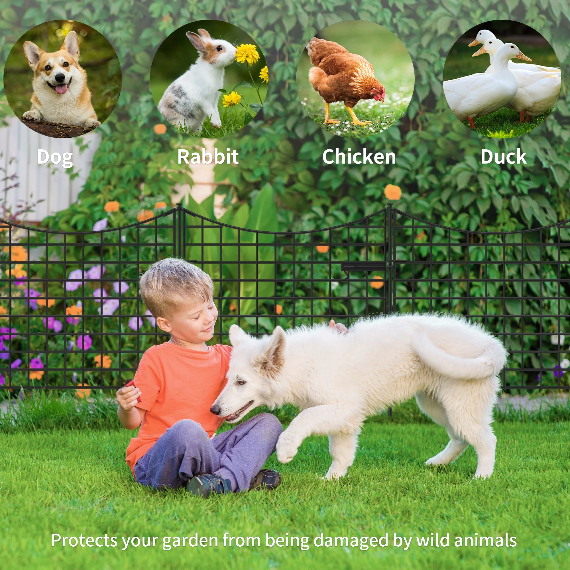 ZhdnBhnos Outdoor Metal No Dig Garden Fence Panels Yard Patio Fencing Border Animal Protective Barrier, 4 Panels + 1 Gate - Curated Treasures Market
