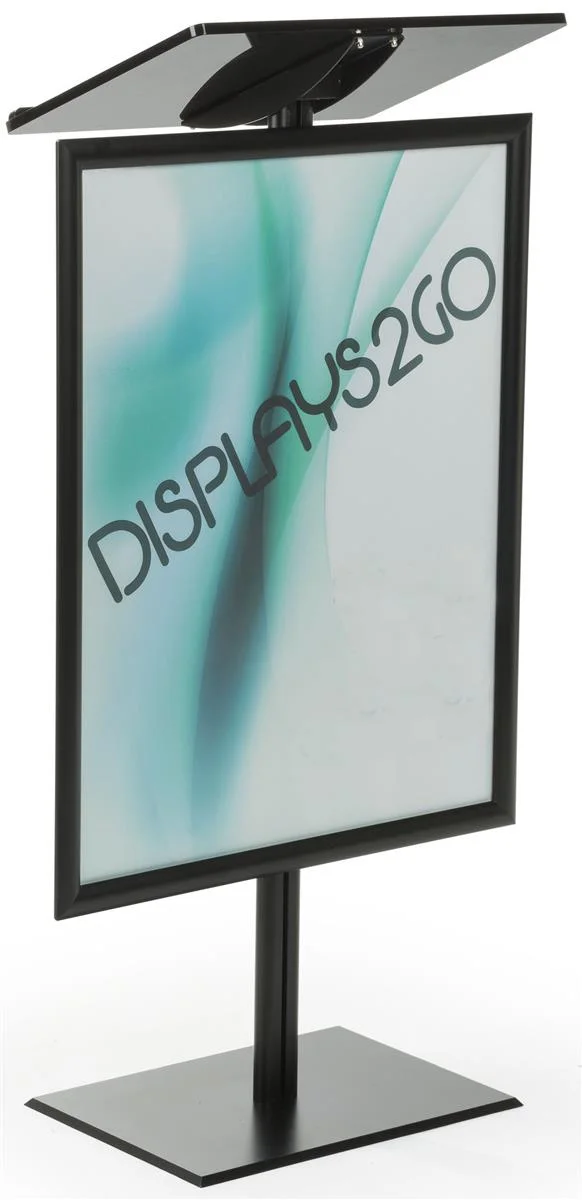 Displays2go CLRLEC228B Podium with Sign Frame, 22x28-Inch Snap Poster Holder, Slanted Top, Black - Curated Treasures Market