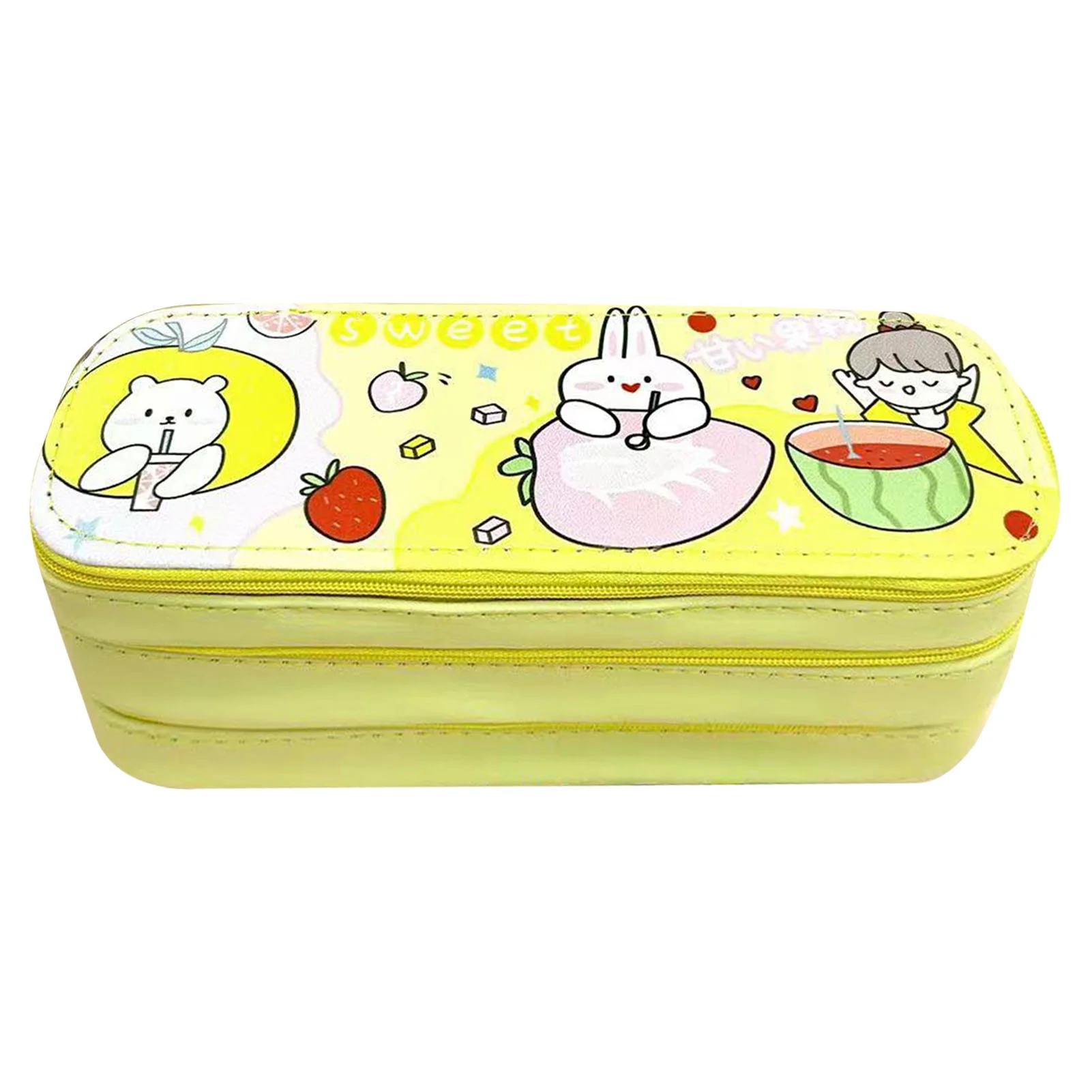 Dekaim Large Pencil Case Multipurpose Cute Stylish 3 Layers Large Capacity Pencil Pouch with Class Schedule for School Office College(Yellow) - Curated Treasures Market