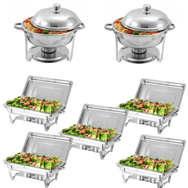 JSTUOKE Chafing Dish Set 7 Pack,5 Full Pan 8QT +2 Round 6QT for Catering Party Festival - Curated Treasures Market