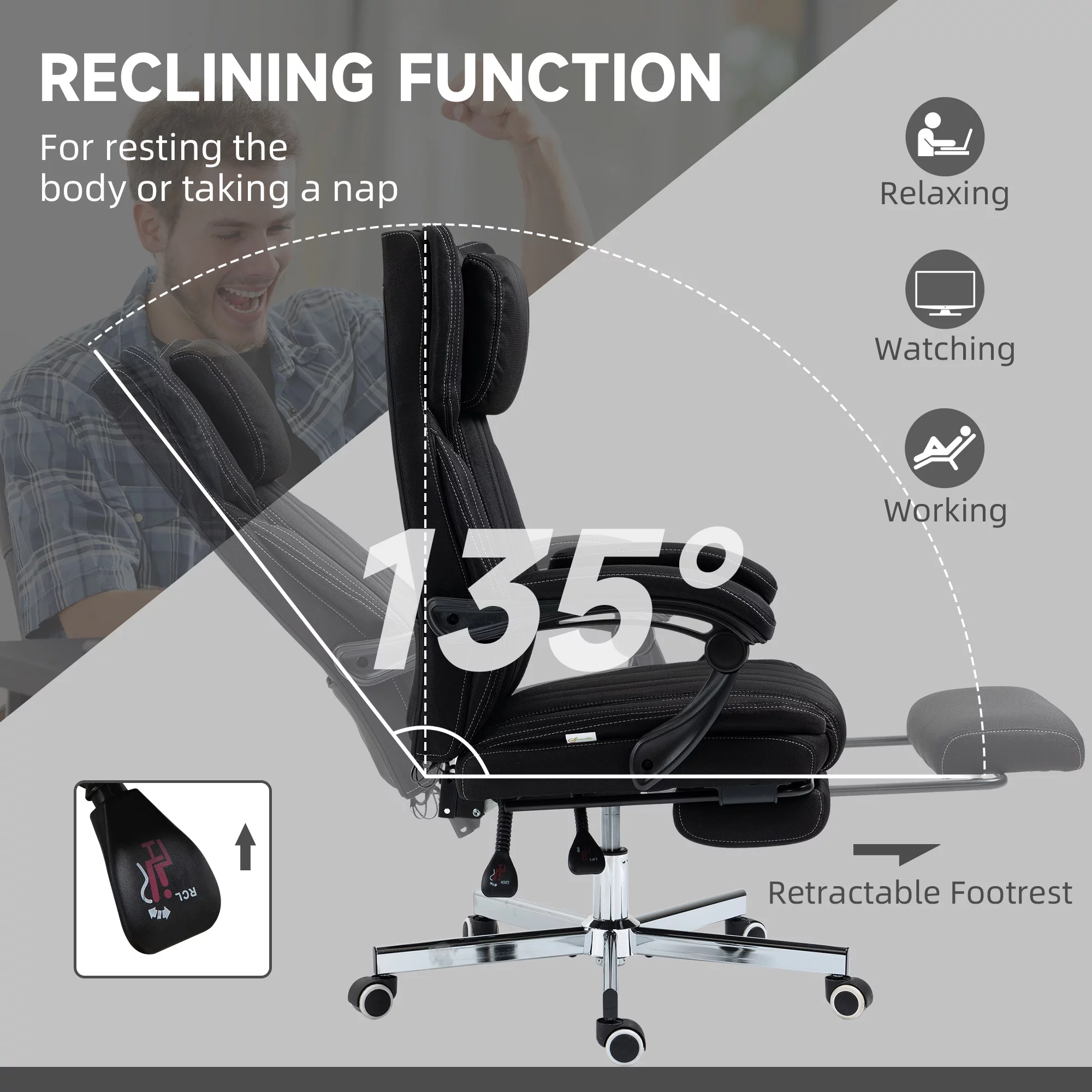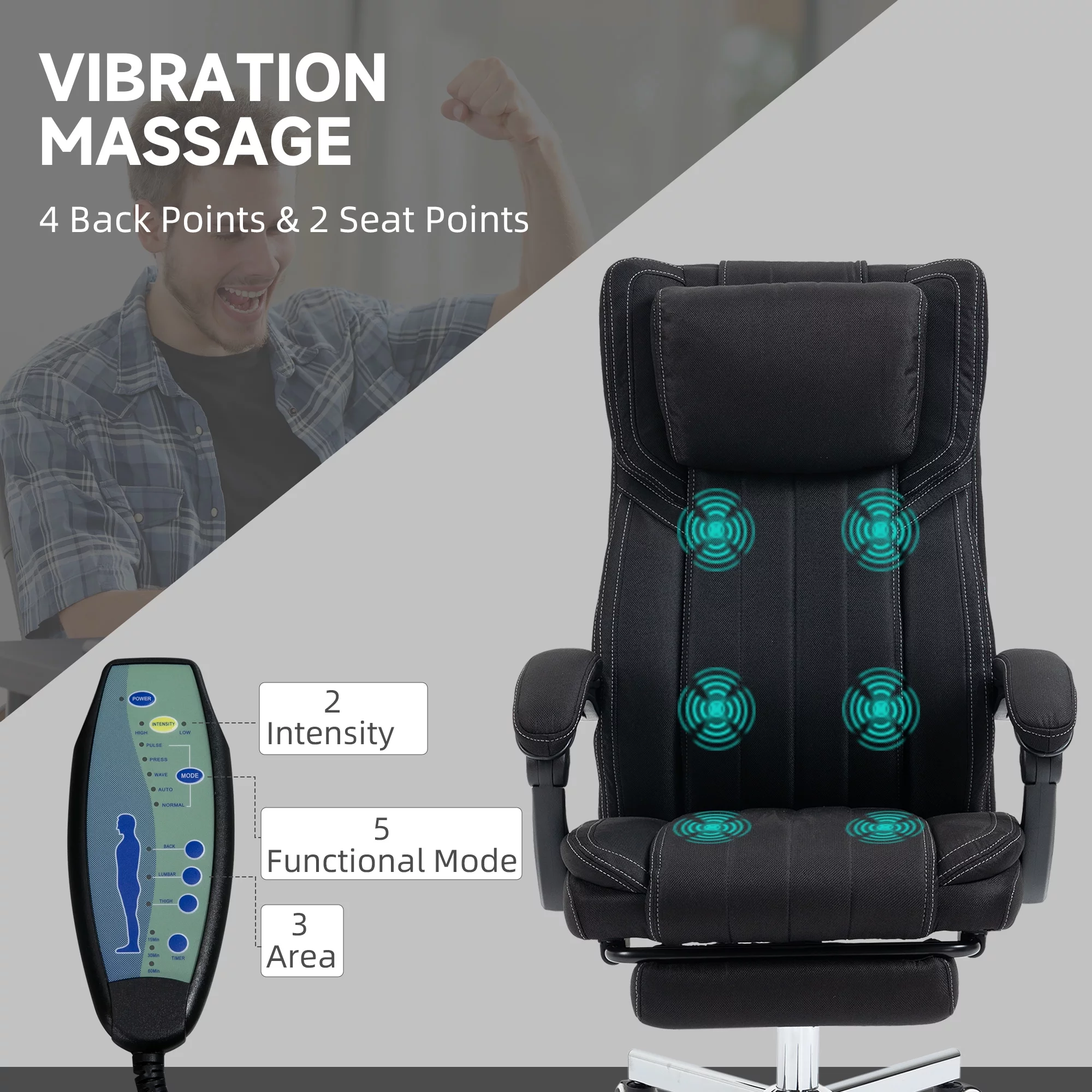 Vinsetto High-Back Vibration Massage Office Chair, Reclining Computer Chair with Footrest, Headrest, Ergonomic Office Chair with 360 Degree Swivel Wheels and Adjustable Height, Black - Curated Treasures Market