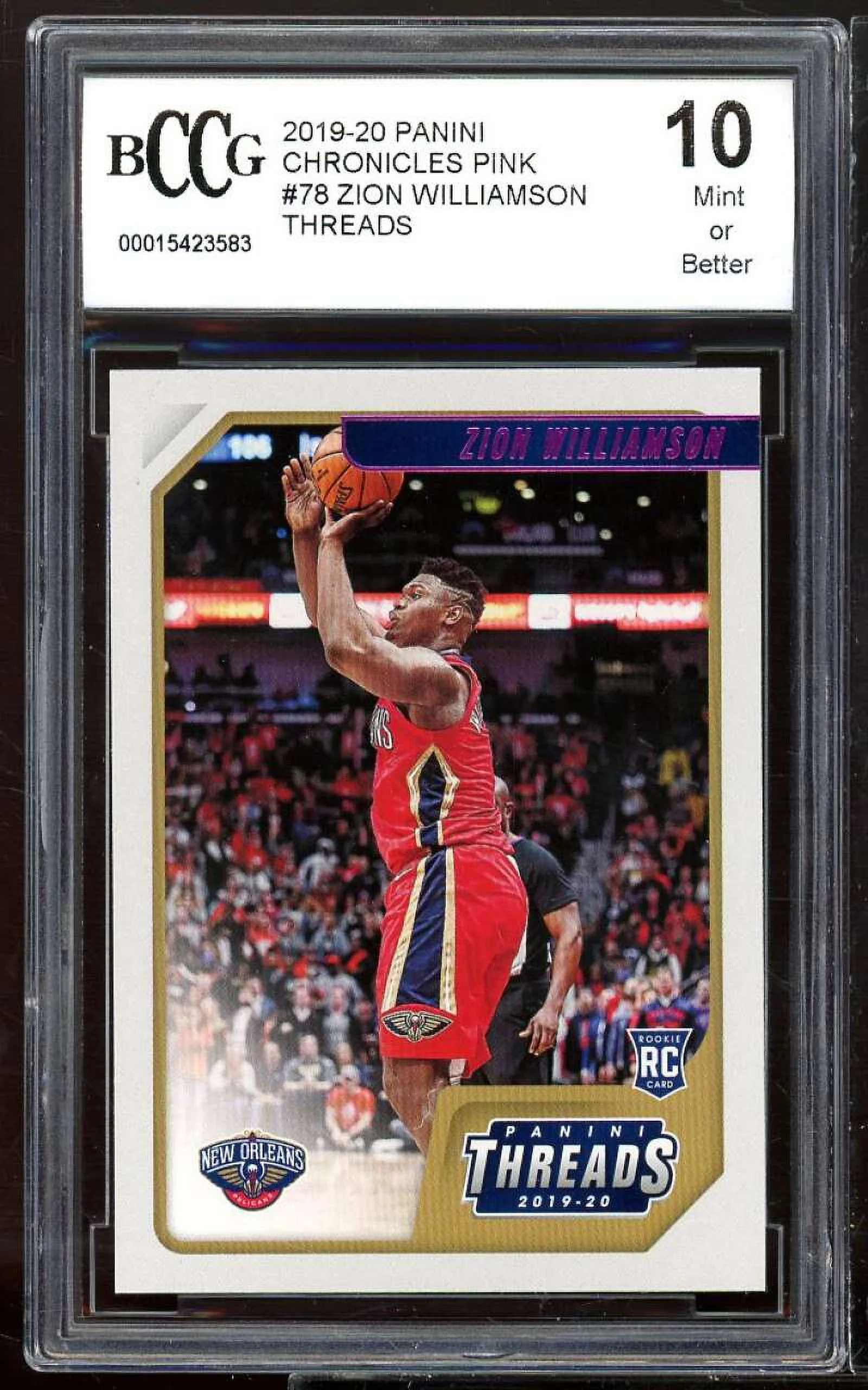 2019-20 Panini Chronicles Pink Threads #78 Zion Williamson Rookie BCCG 10 Mint+ - Curated Treasures Market