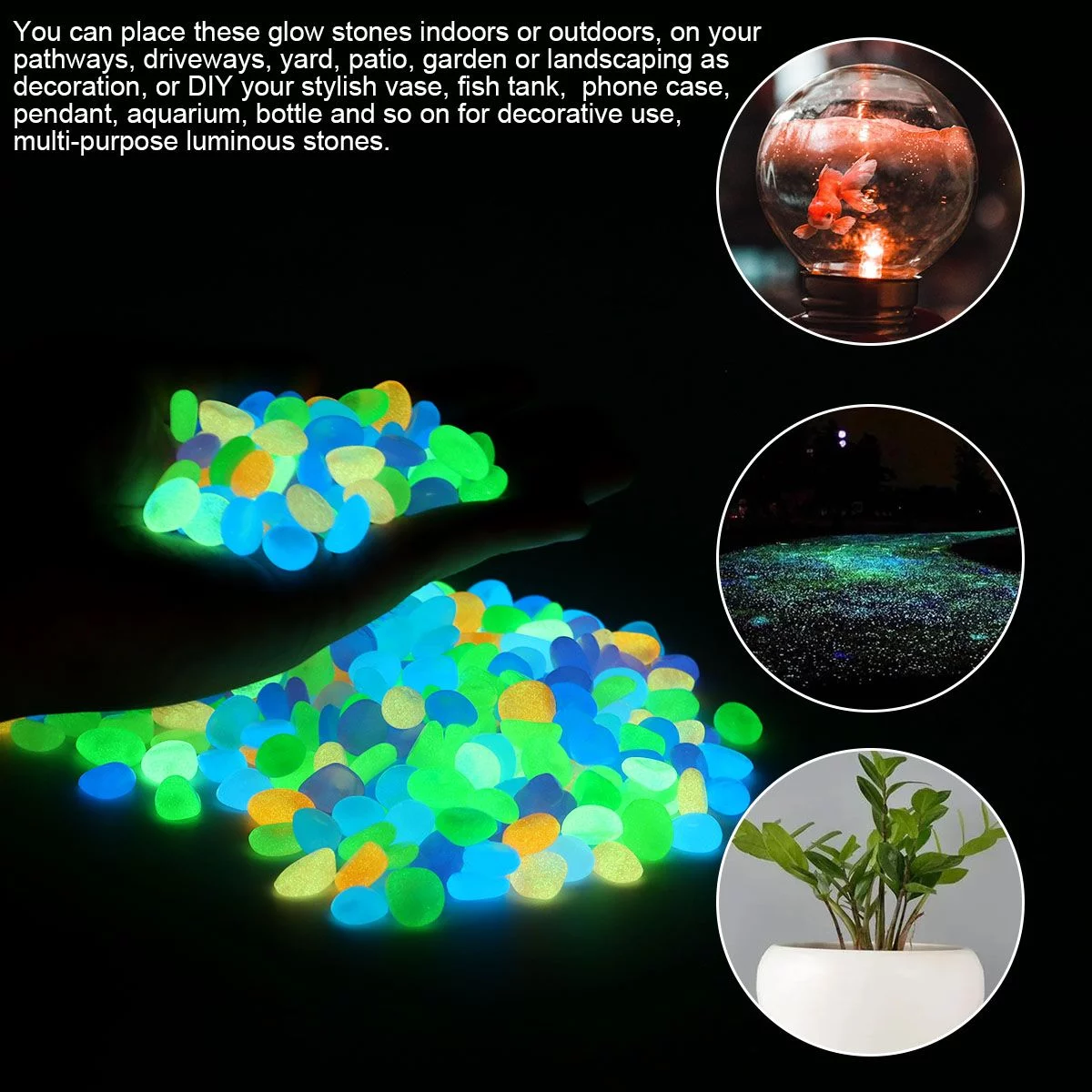 Deago 300Pcs Glow in The Dark Stones Garden Luminous Pebbles Stone Rocks for Indoor Outdoor Walkways Driveway Yard Fish Tank Decor (Colorful) - Curated Treasures Market