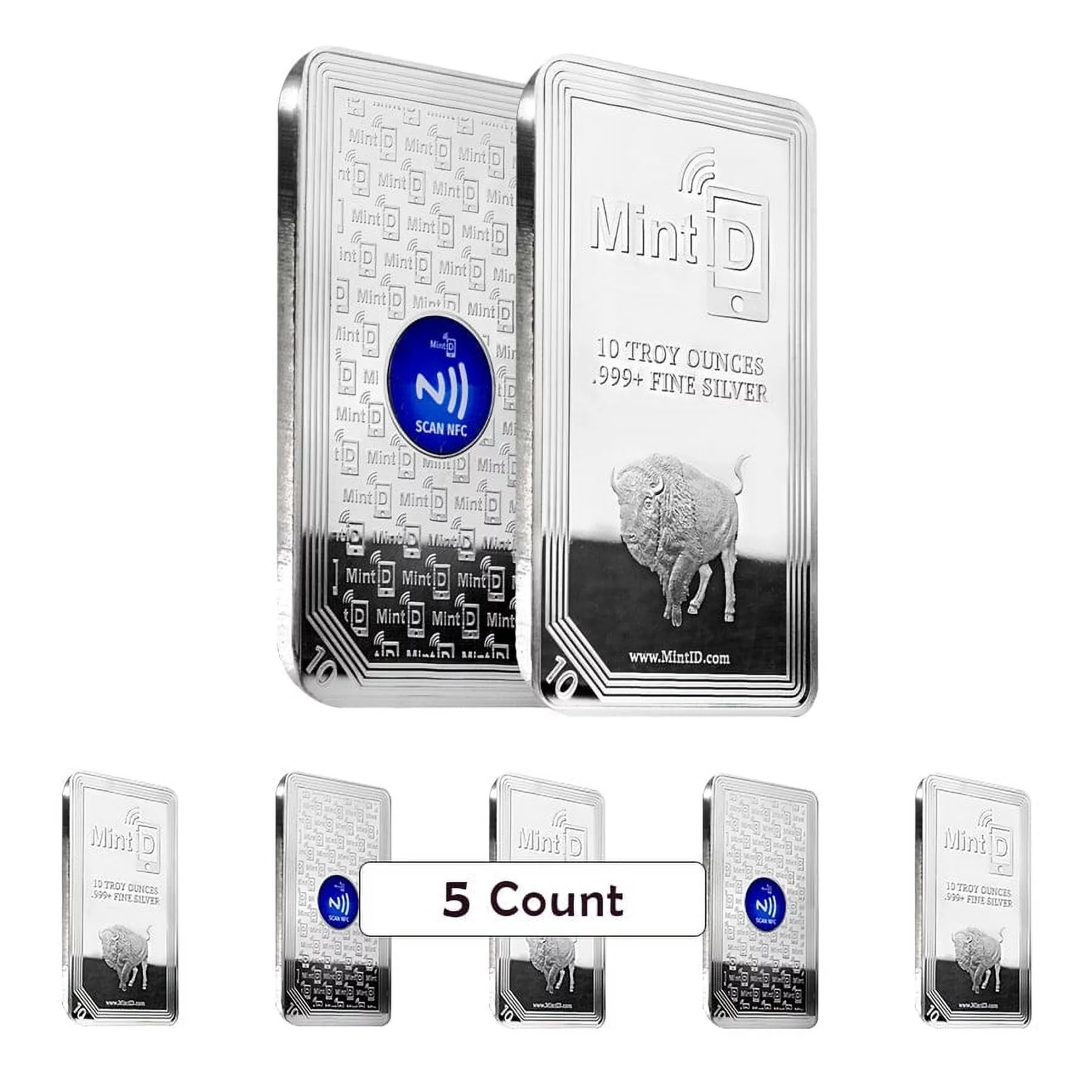 Lot of 5 - 10 oz MintID Buffalo Silver Bar .999+ Fine (NFC Scan Authentication) - Curated Treasures Market