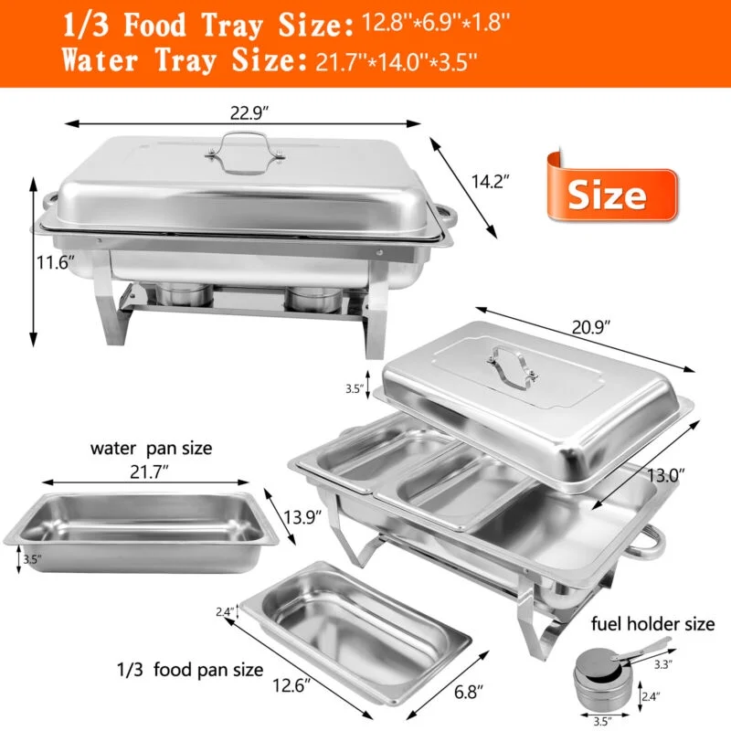 JSTUOKE Chafing Dish Set 7 Pack,5 Full Pan +2 1/3 Pan Rectangular 8QT for Catering Party Festival - Curated Treasures Market