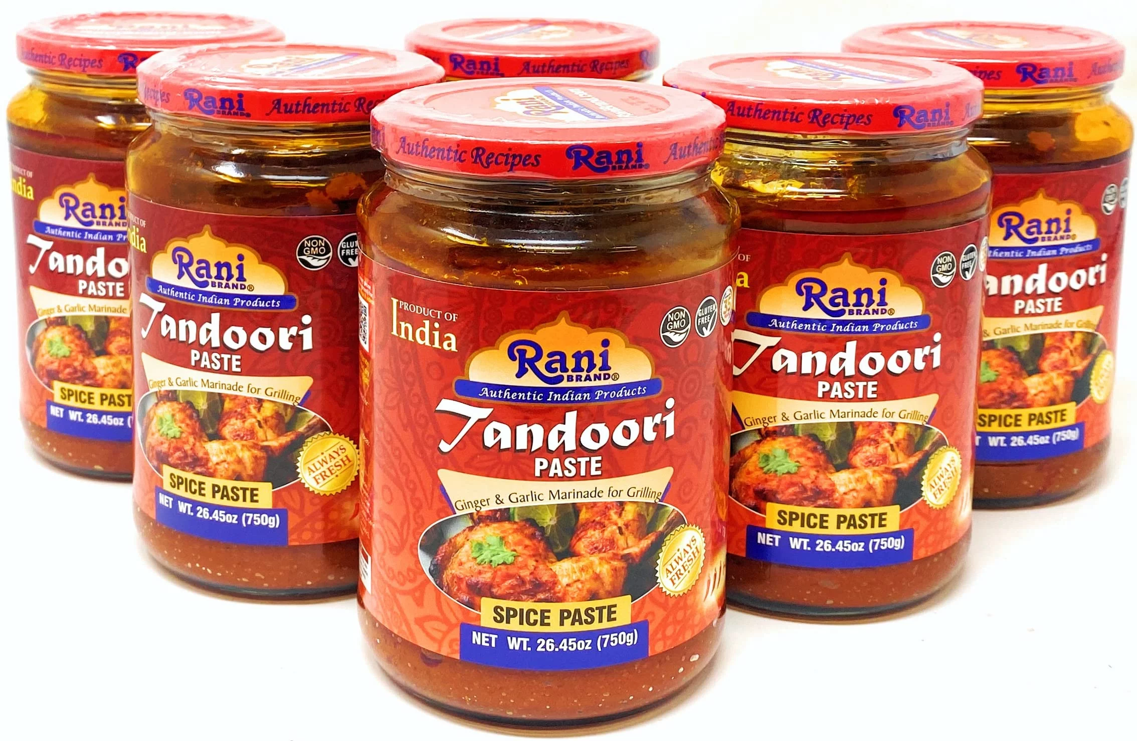 Rani Tandoori Paste (No Colors) 26.5oz (750g) Glass Jar, Pack of 5+1 FREE ~ For Tandoori Chicken, Chicken Tikka, Paneer Tikka | All Natural | NON-GMO | Vegan | Gluten Free | Indian Origin - Curated Treasures Market