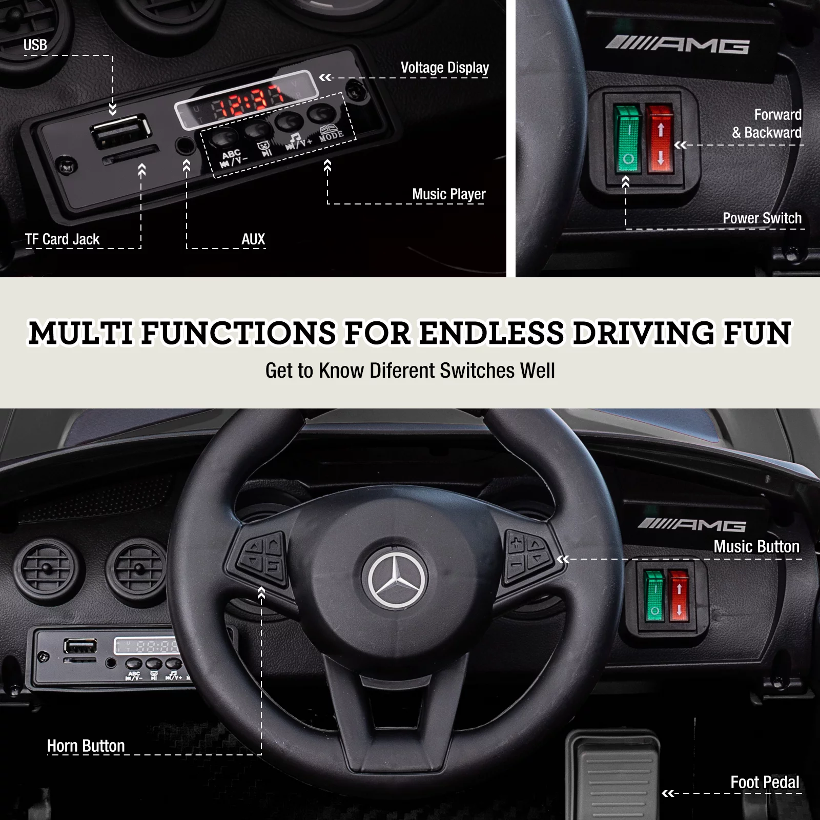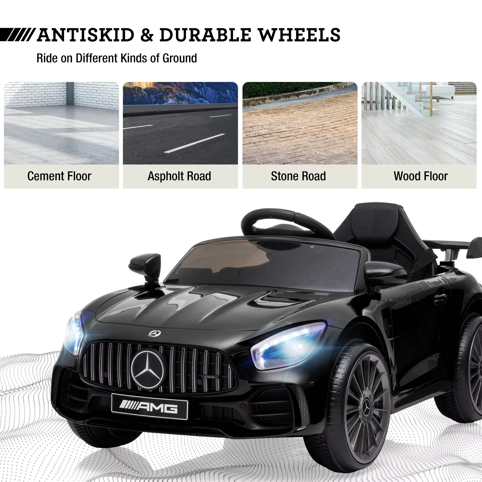 JOINATRE 12V Kids Ride on Car, Licensed Mercedes Benz AMG GTR Electric Cars, Battery Powered Ride on Toys with Remote Control, 3 Speeds, Music, LED Lights and Safety Belt, Black - Curated Treasures Market