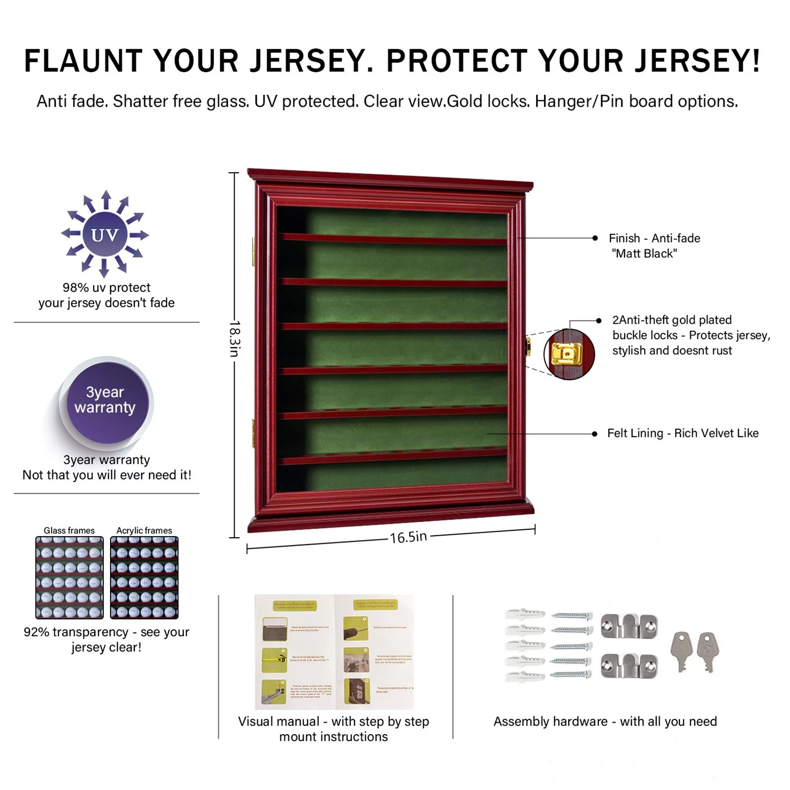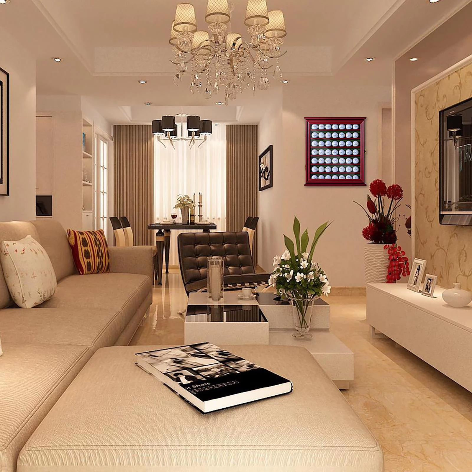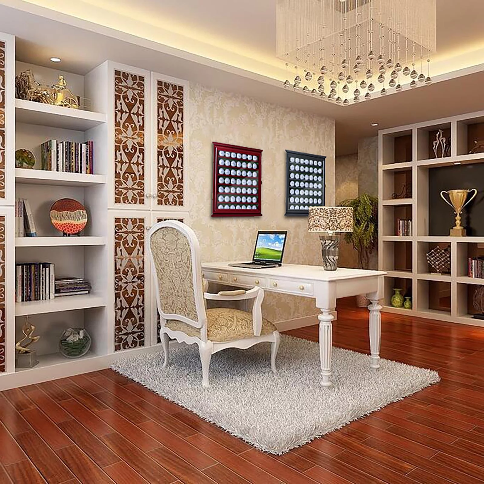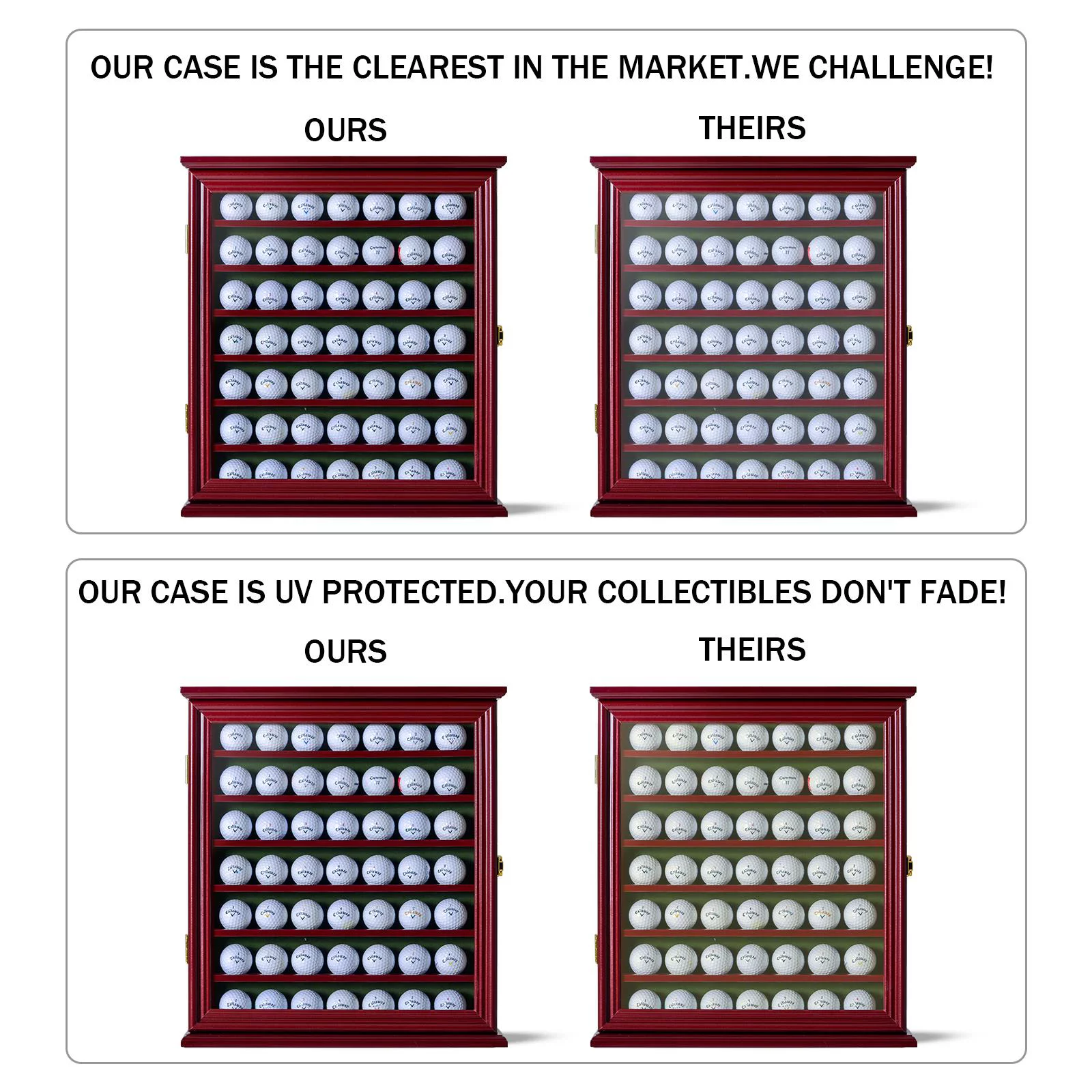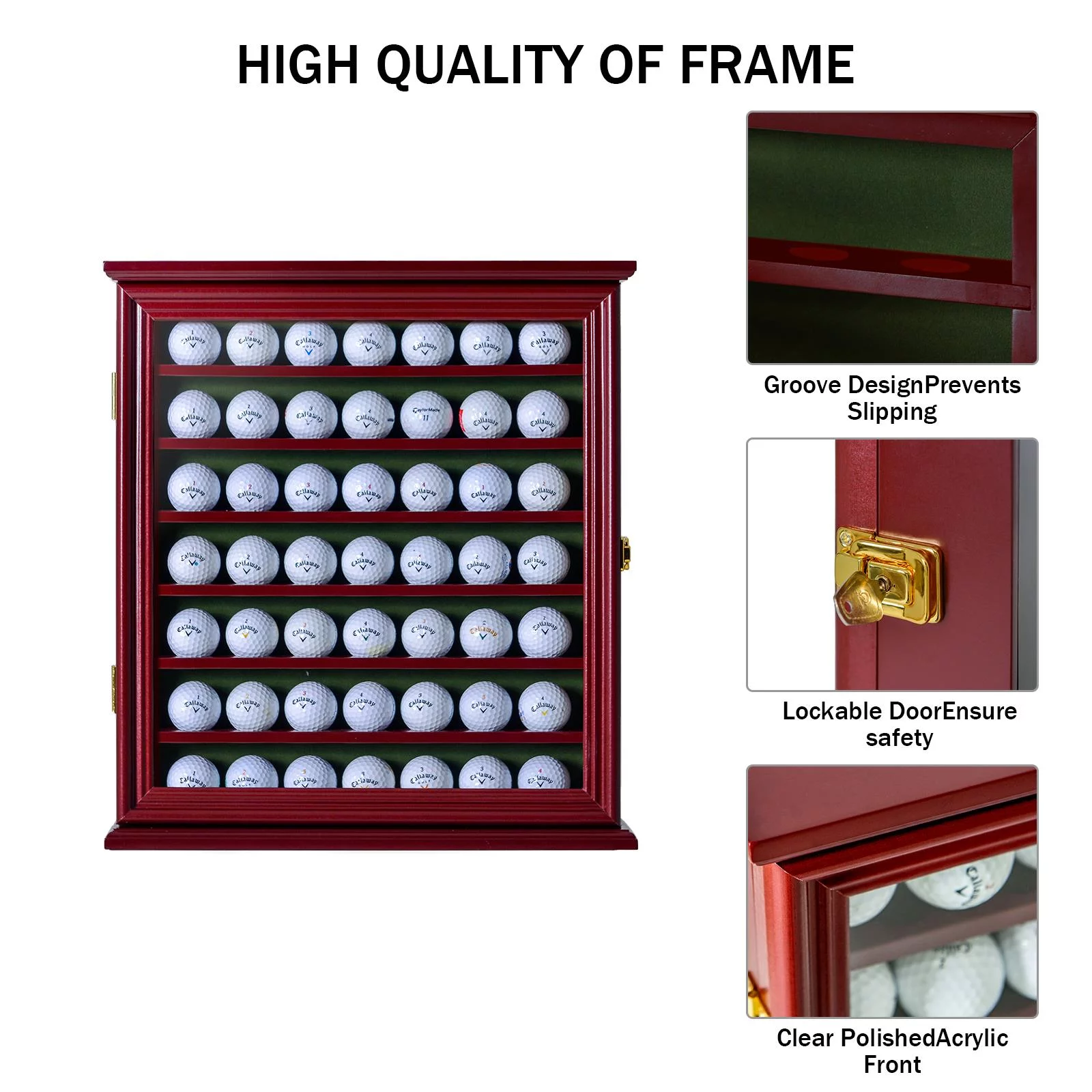Zimtown Wall Mount 49 Golf Ball Display Holder Cabinet, Golf Enthusiasts with Lockable Door, Black/Walnut - Curated Treasures Market