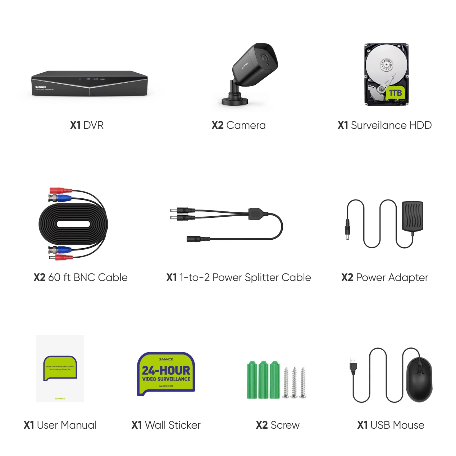 SANNCE 4CH DVR CCTV System 2PCS 2MP IP66 Waterproof Outdoor Security Cameras 1080P HDMI TVI CCTV DVR 1280TVL Surveillance Kit With 1T HDD - Curated Treasures Market