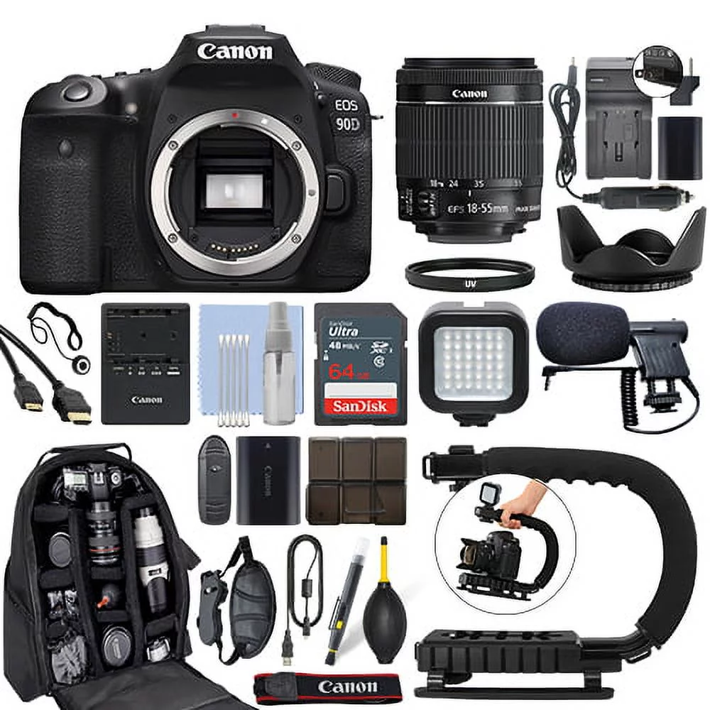 Canon EOS 90D Digital SLR Camera with 18-55mm IS STM Lens + 64GB Pro Video Kit - Curated Treasures Market