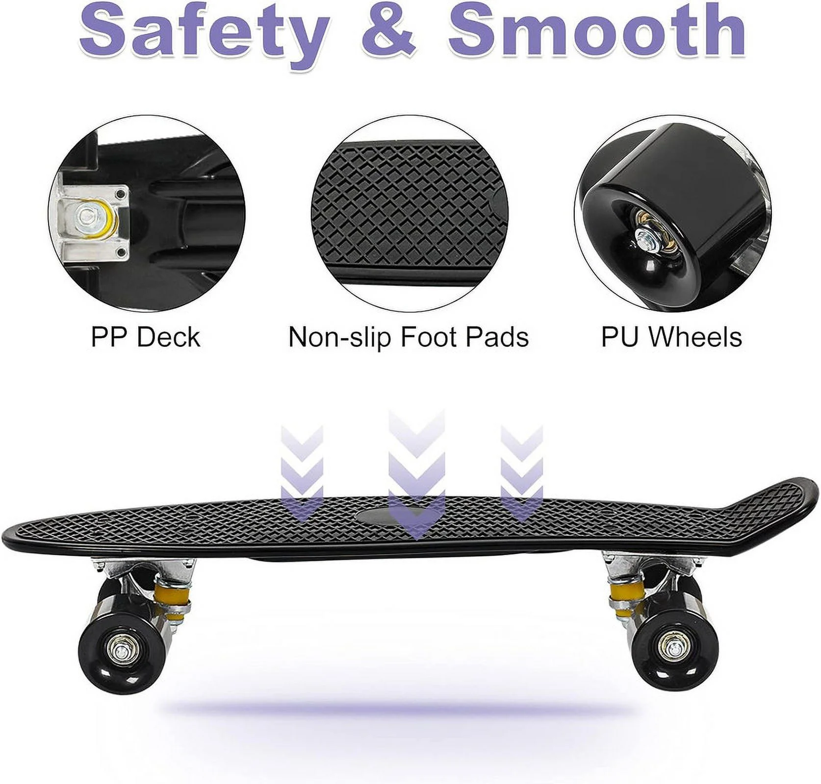 SISIGAD Skateboard, Complete Skateboard, 22 inch Mini Cruiser Skateboards for Kids Boys Teens Beginners - Curated Treasures Market