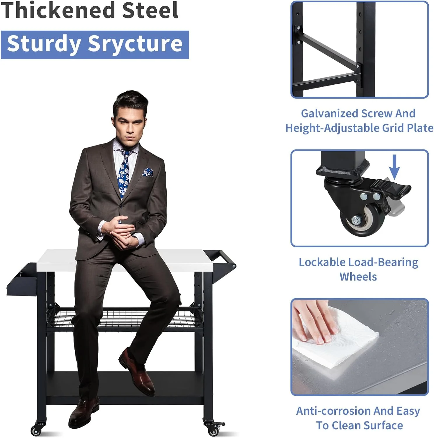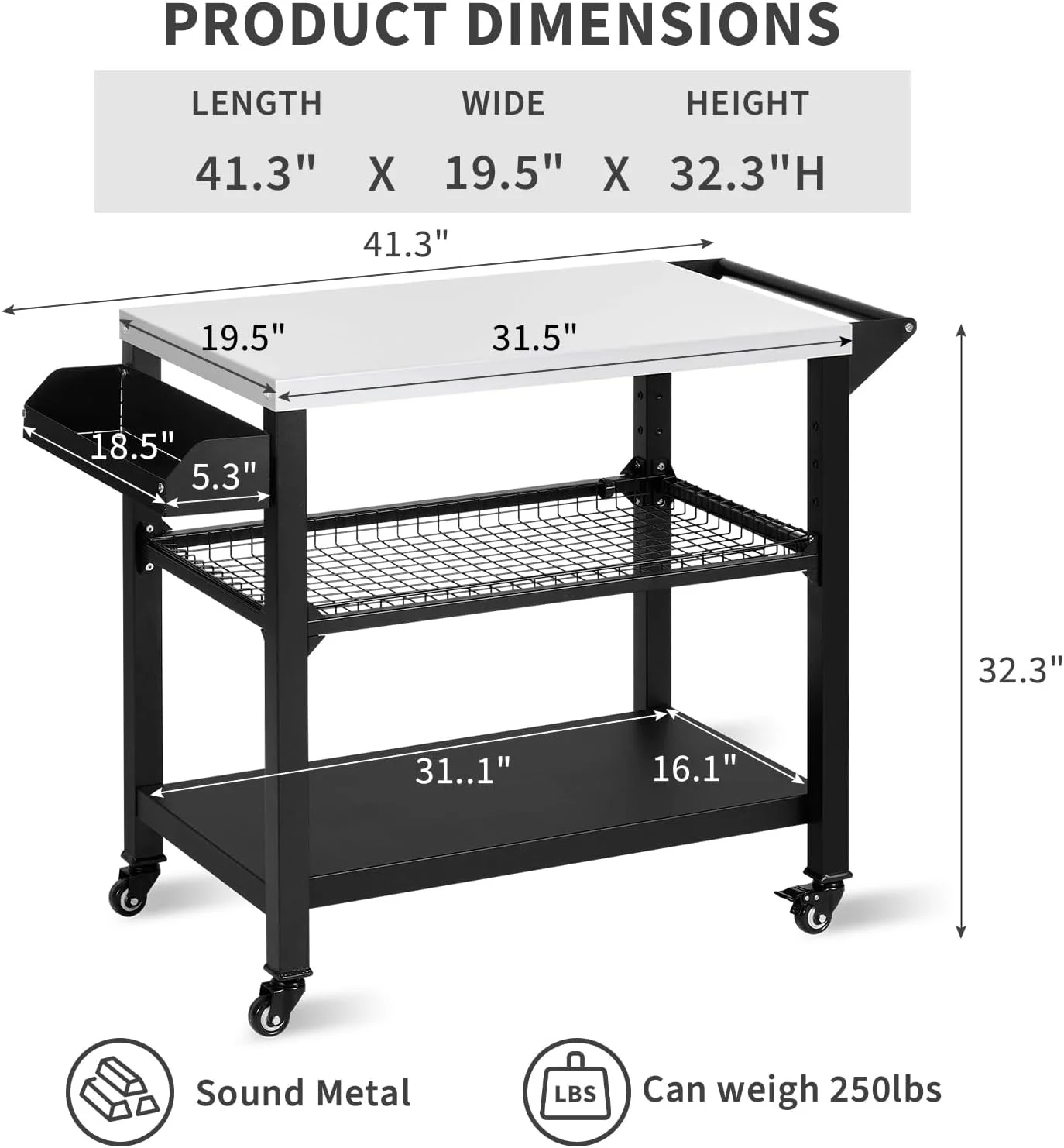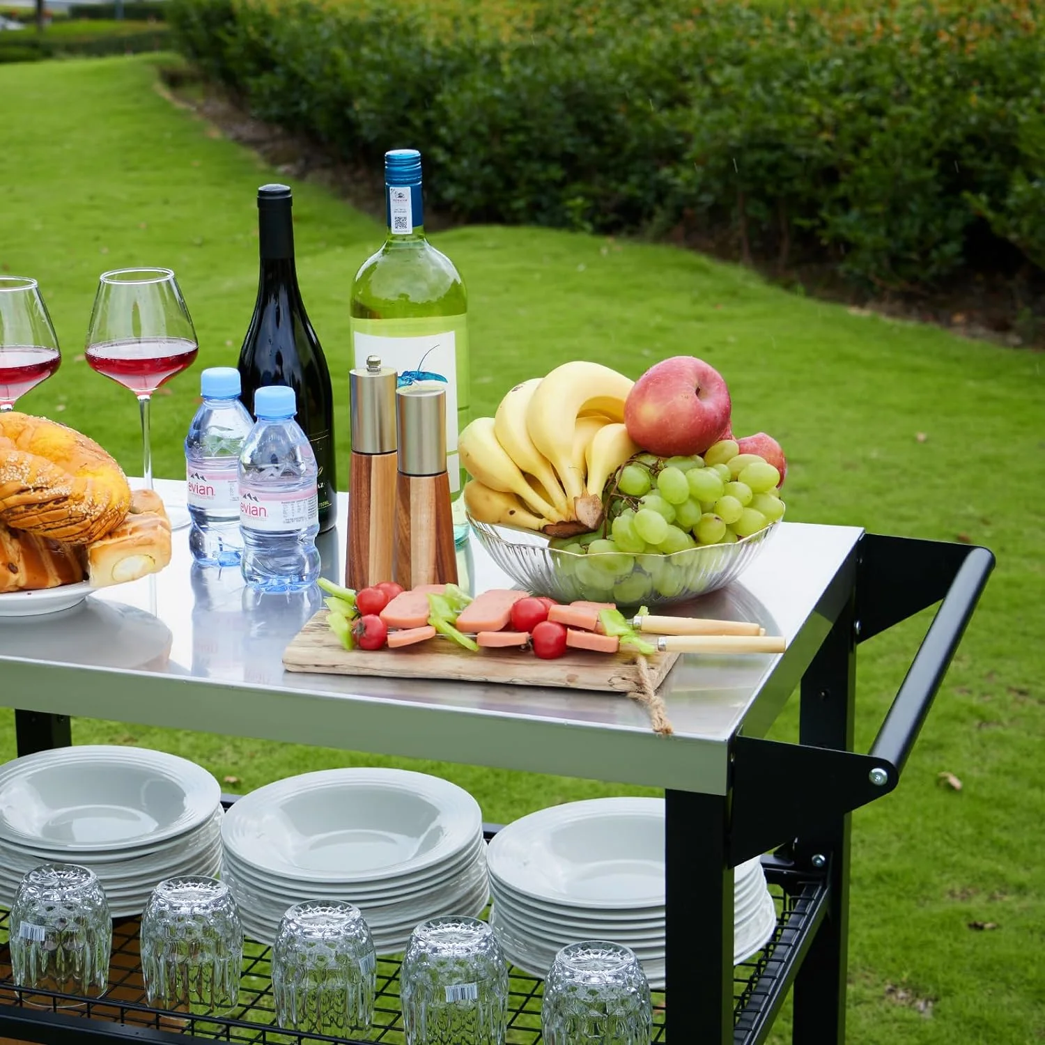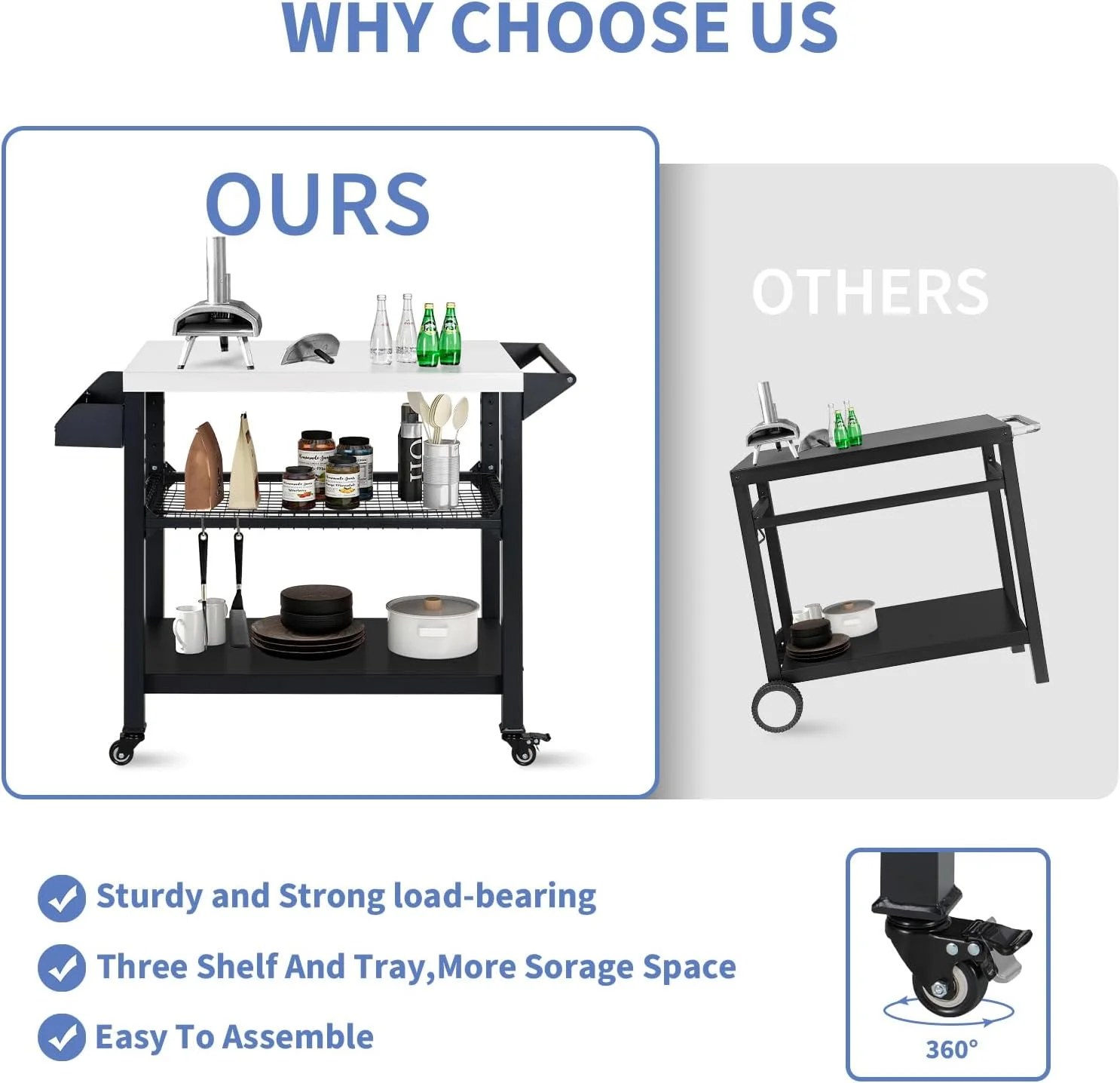 YiSHOP Three-Shelf Movable Outdoor Grill Cart Pizza Oven Stand, Multifunctional Kitchen Food Prep Table with Drawer, Stainless Steel Desktop Dining Worktable on 4 Wheels & Seasoning Tray - Curated Treasures Market