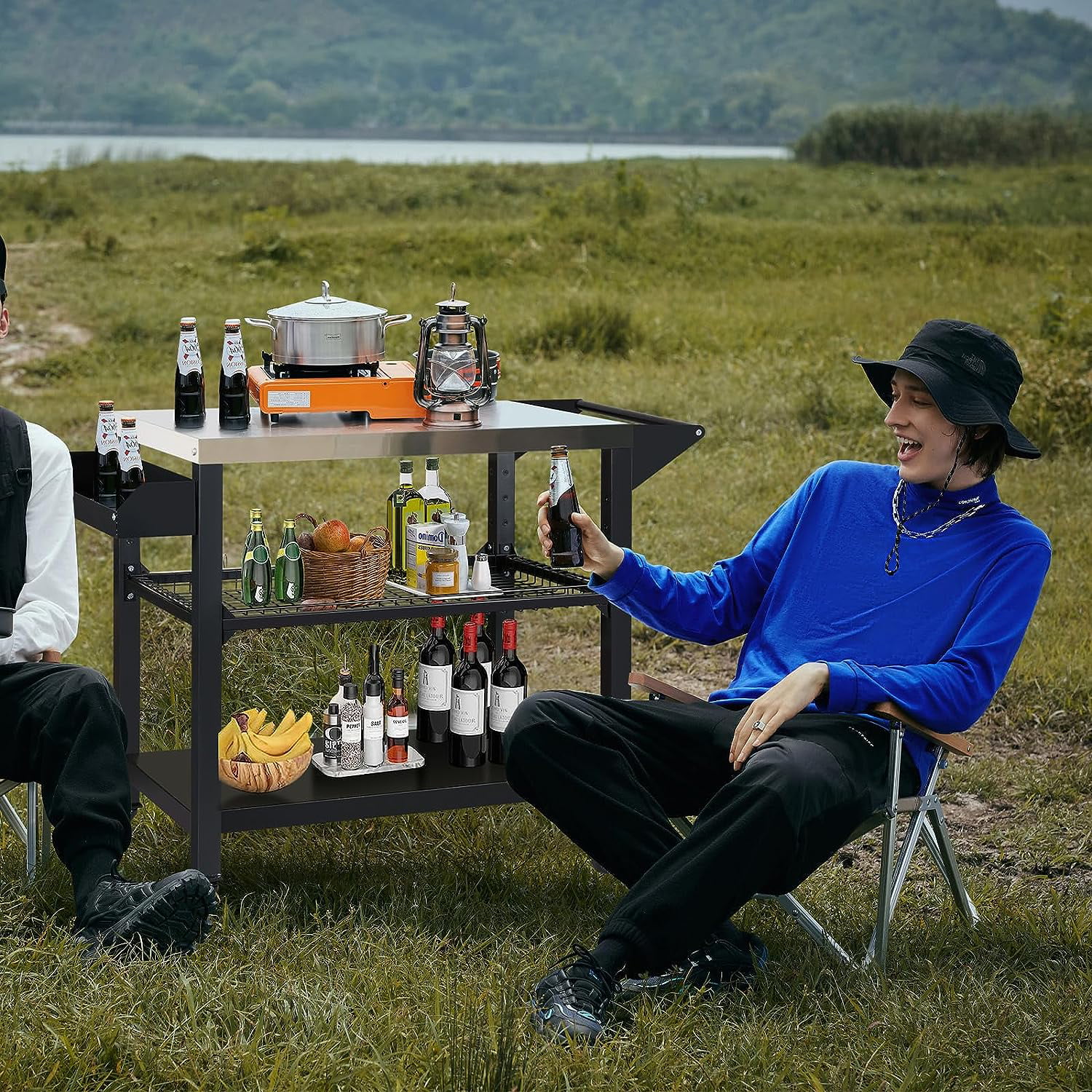 Buumin 3-Shelf Outdoor Grill Table, Grill Cart Outdoor with Wheels, Pizza Oven and Food Prep Table, Blackstone Table with Stainless Steel Tabletop, Grill Stand for Blackstone Griddle for Outside BBQ - Curated Treasures Market