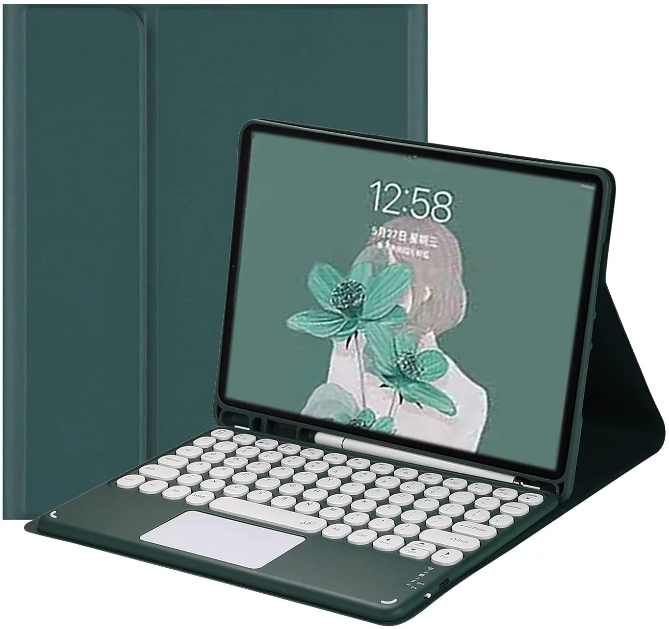 REQO 2022 iPad 10th Generation Keyboard Case with Touchpad Cute Round Key Color Keyboard iPad 10 10.9 inch Detachable Touch Keyboard Slim Smart Cover (DarkGreen) - Curated Treasures Market