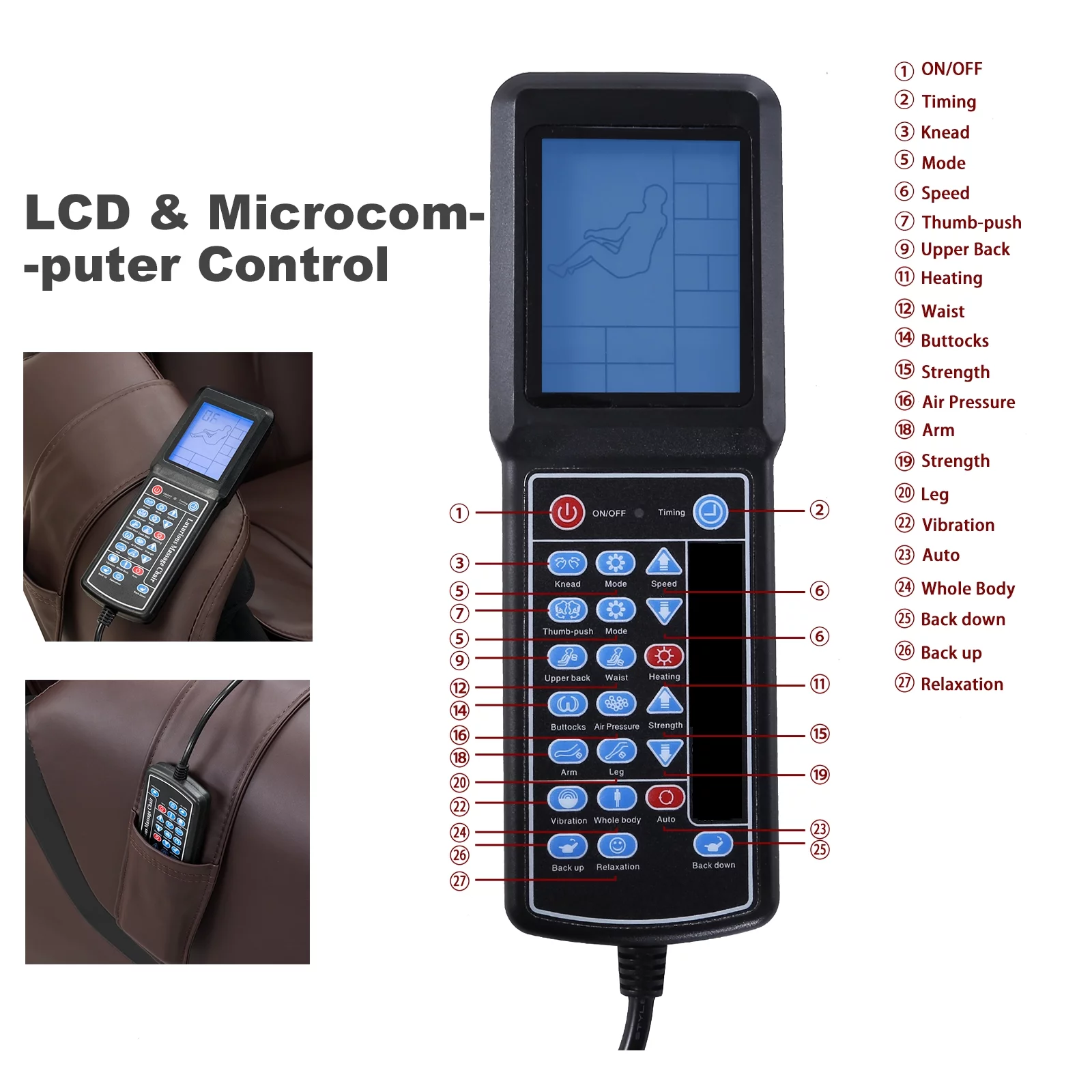 Uenjoy Full Body Zero Gravity Massage Chair Shiatsu Recliner Built-In Heat and Air Massage System Foot Rest - Brown - Curated Treasures Market