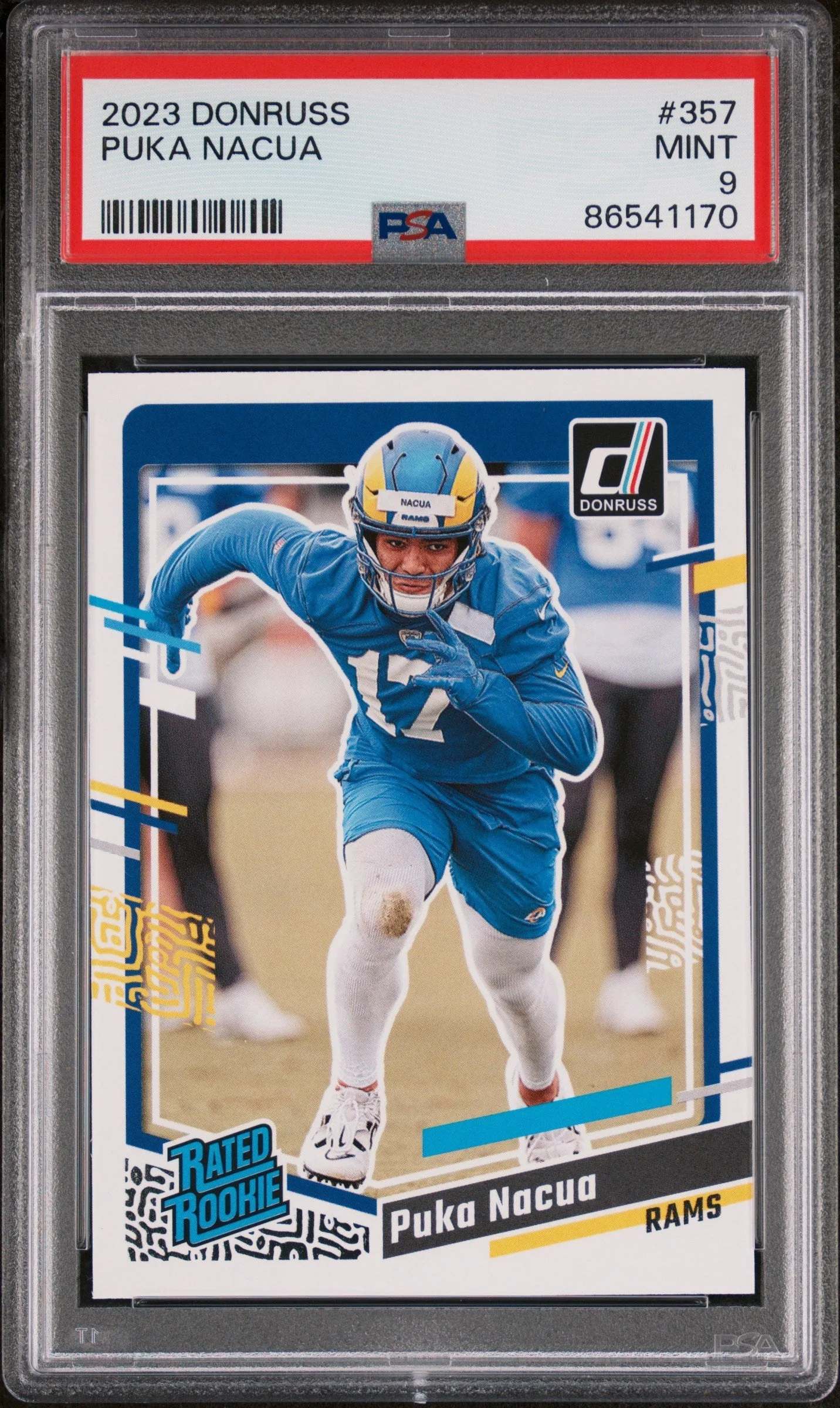 Graded 2023 Panini Donruss Rated Rookie Puka Nacua #357 Rookie RC Football Card PSA 9 Mint - Curated Treasures Market
