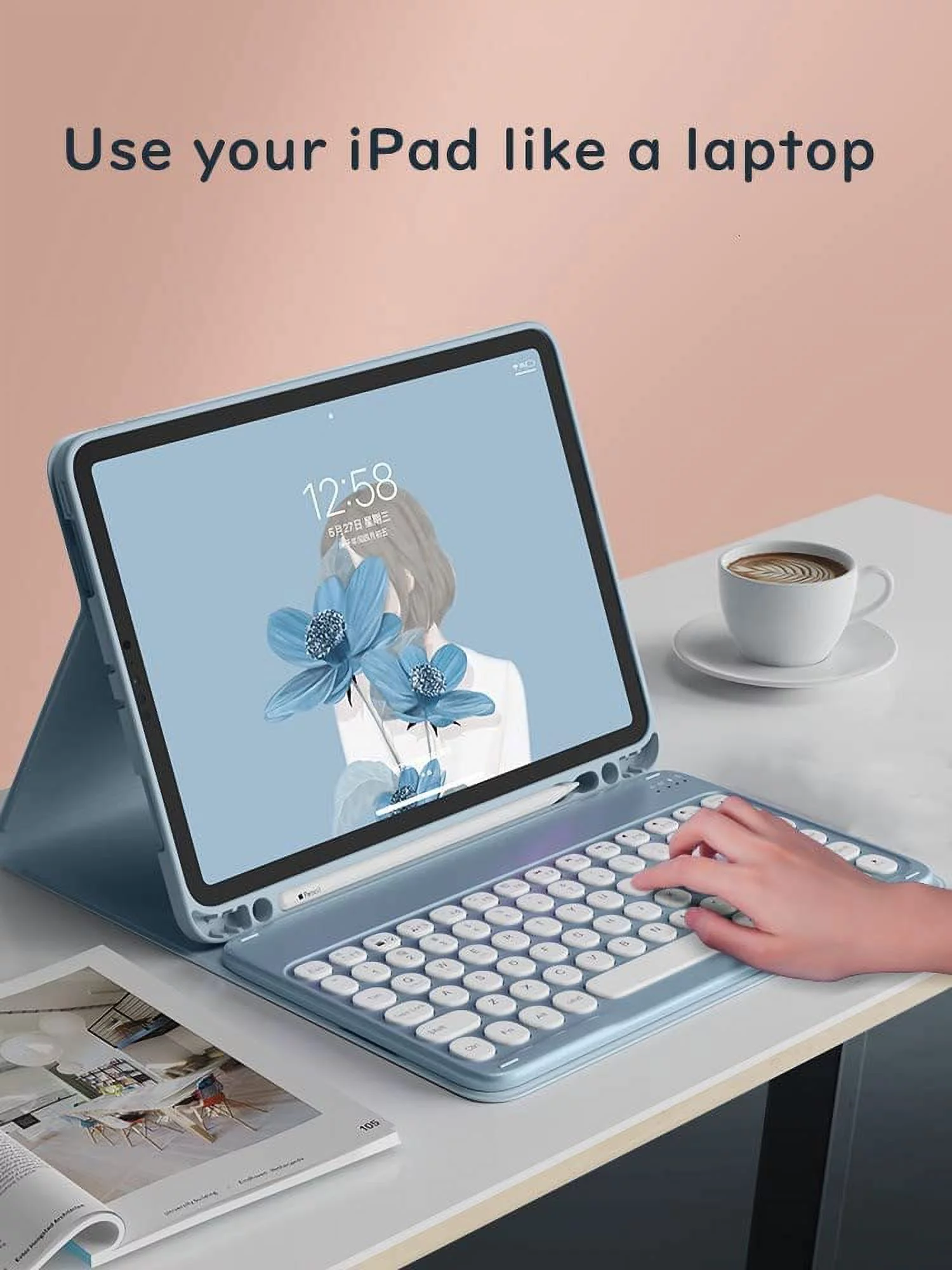 REQO 2022 New iPad 10th Generation 10.9" Keyboard Case Cute Round Key Color Keyboard Wireless Detachable BT Keyboard Cover for iPad 10 10.9-inch (Purple) - Curated Treasures Market