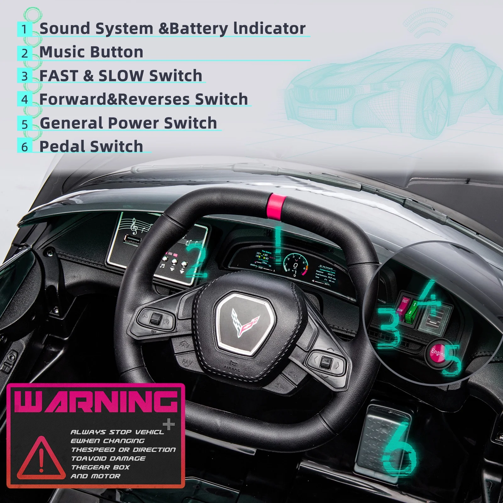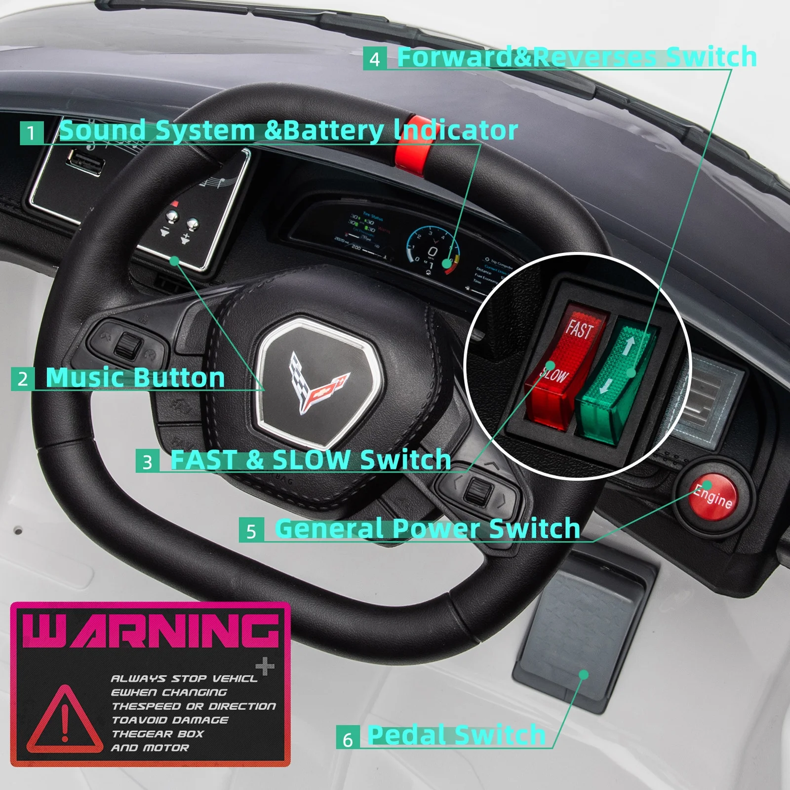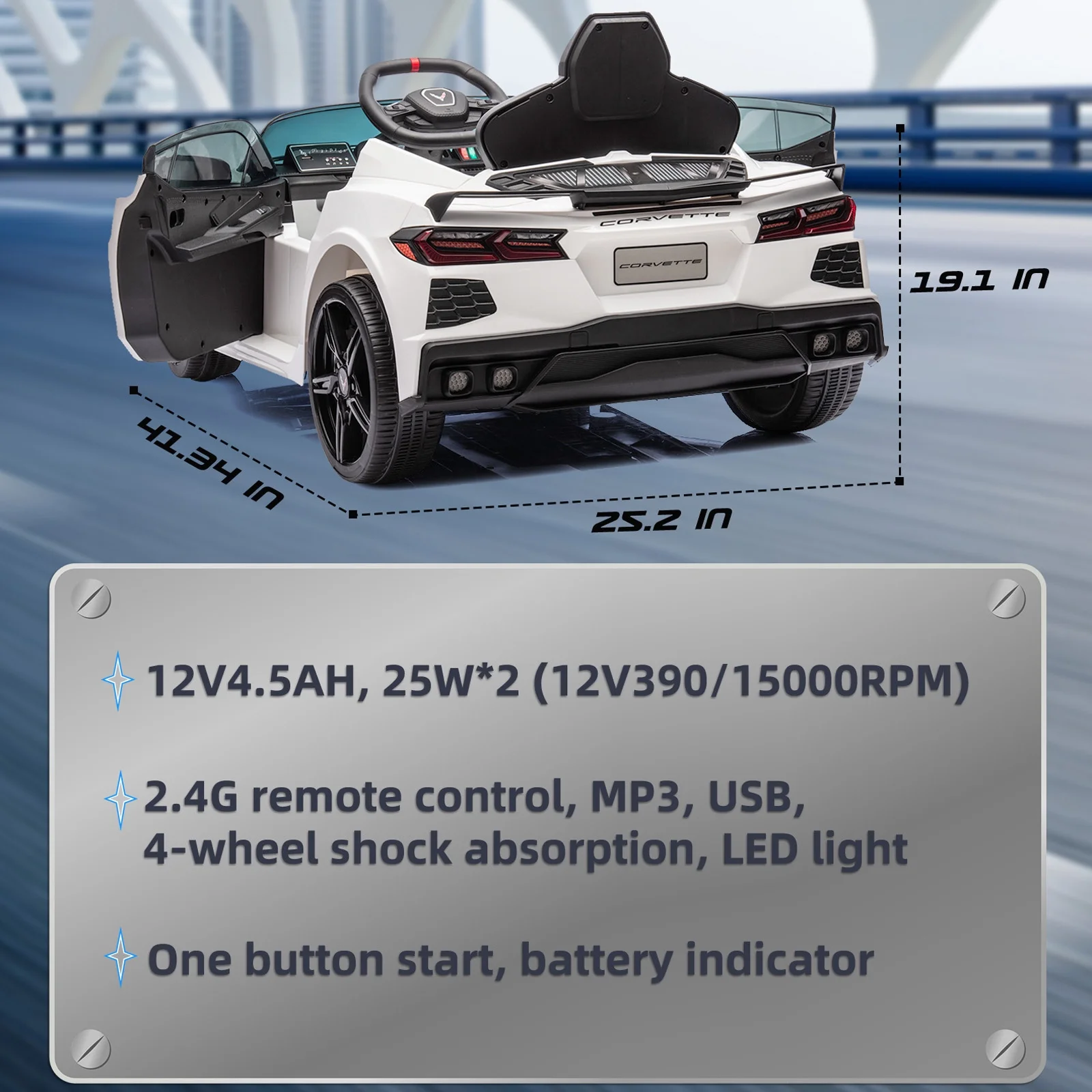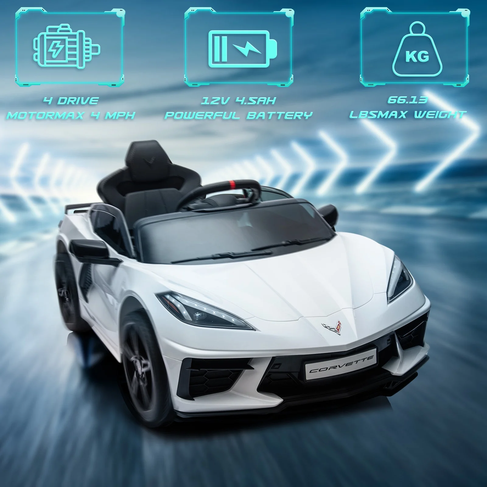 XJD Licensed Chevrolet Corvette C8 12V Kids Electric Ride on Car Toy, Battery Powered Car Truck with Remote Control, Bluetooth, 3 Speeds, LED Headlight, Music Player & Spring Suspension, White - Curated Treasures Market