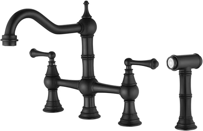 MAICOSY Bridge Dual Handles Kitchen Faucet with Pull-Out Side Spray in - Curated Treasures Market
