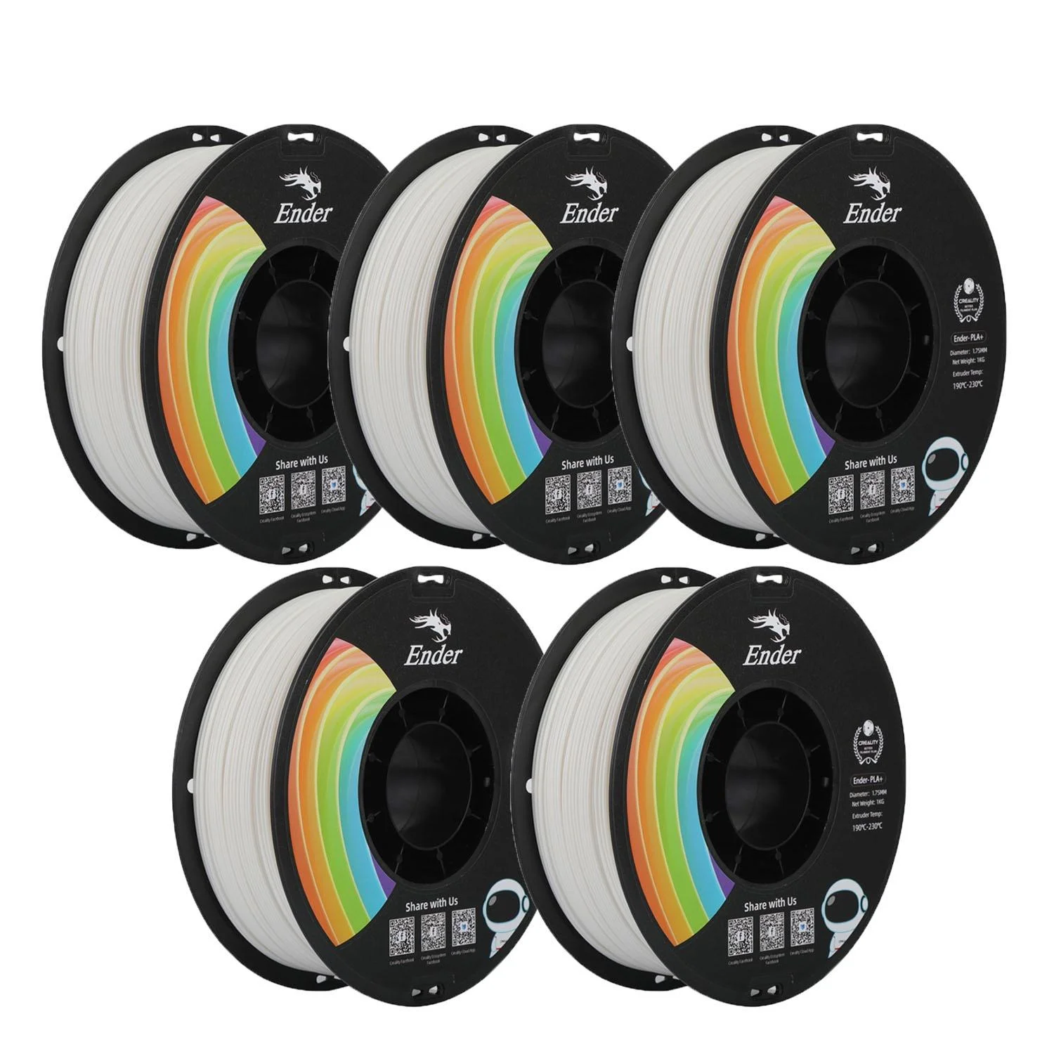 5 Pack Official Creality Ender PLA+ Filament 1.75mm 3D Printer PLA Plus Filament Strong Toughness Less-tangle No Clog-White - Curated Treasures Market