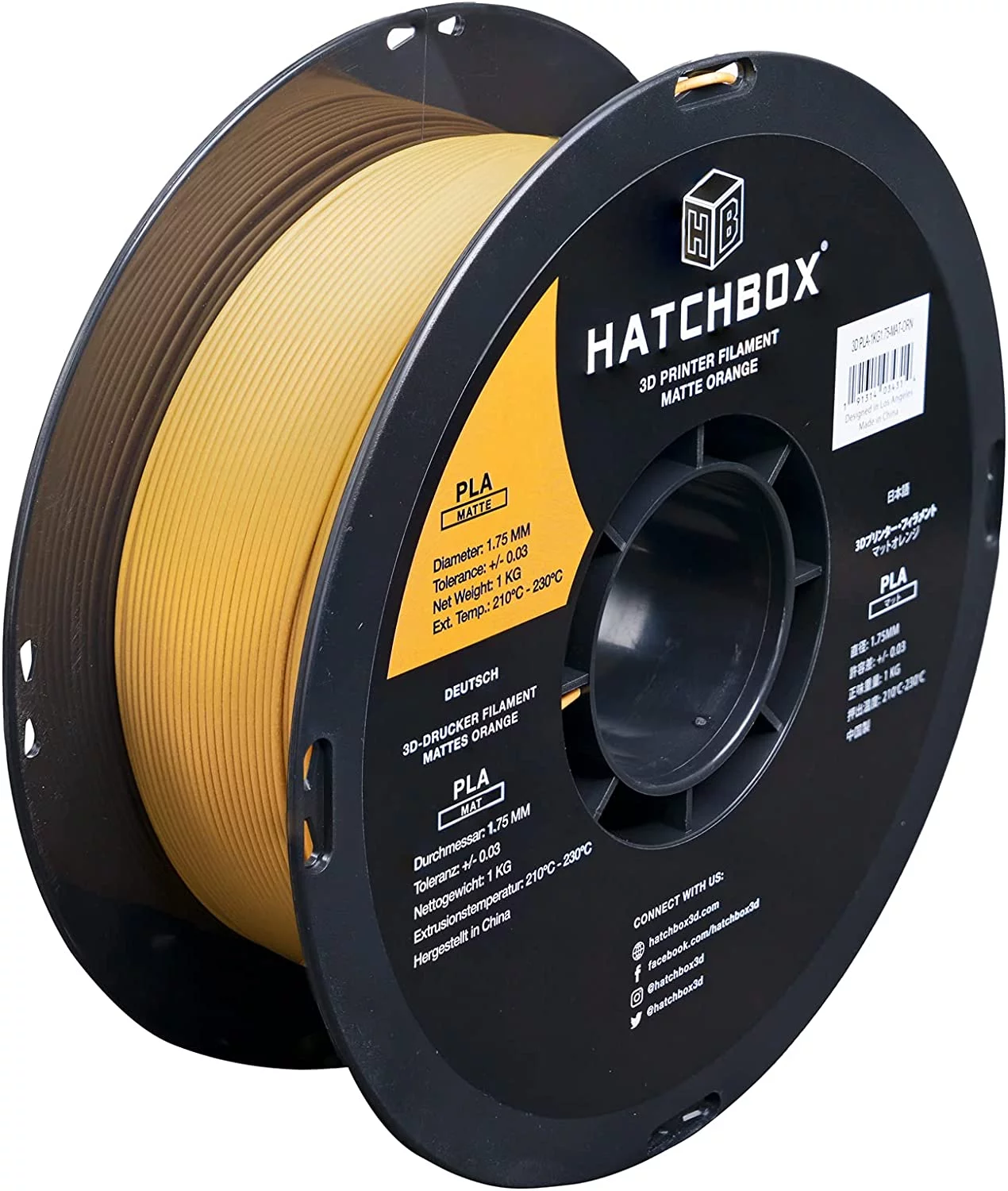 HATCHBOX Matte PLA 3D Printer Filament, Dimensional Accuracy +/- 0.03 mm, 1 kg Spool, 1.75 mm, Orange - Curated Treasures Market