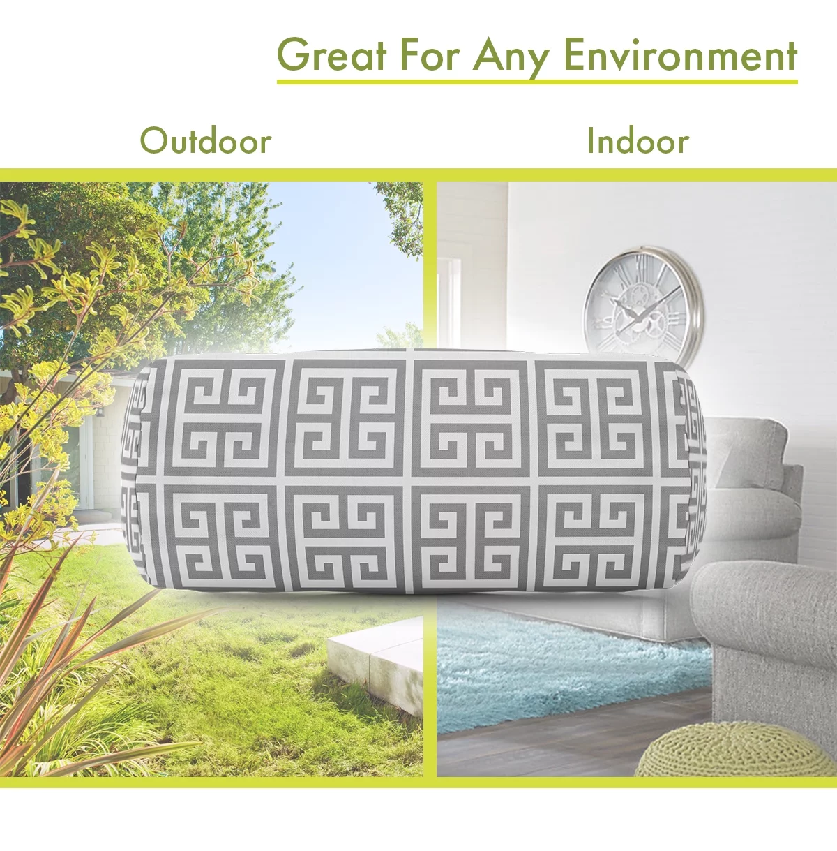 Majestic Home Goods Indoor Outdoor Gray Towers Round Bolster Decorative Throw Pillow 18.5 in L x 8 in W x 8 in H - Curated Treasures Market