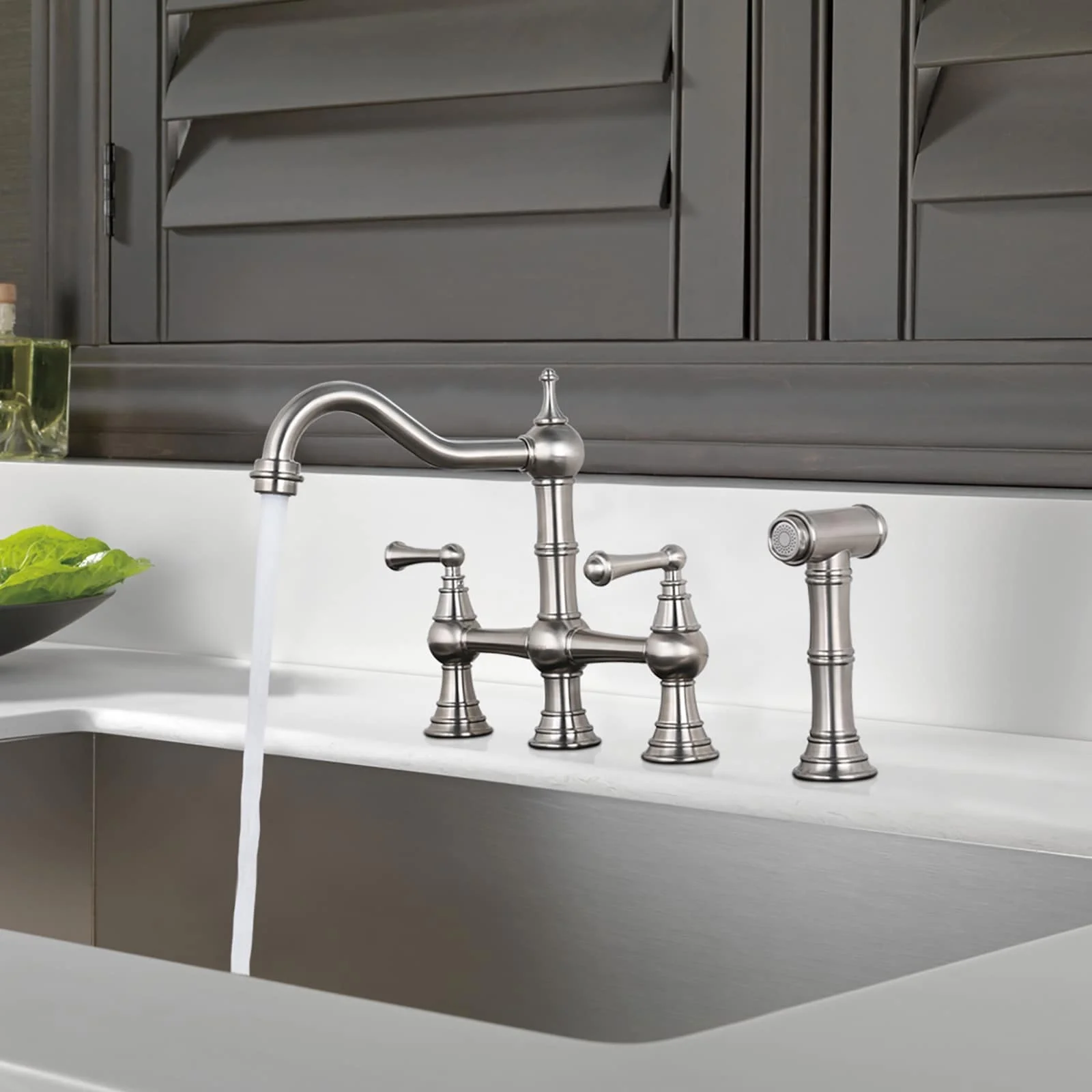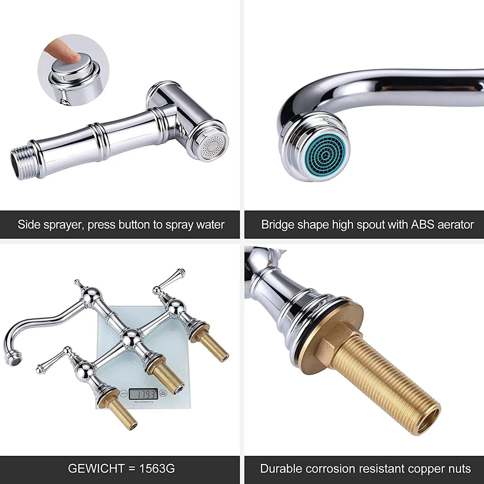 23115A1RB-OS WOWOW Kitchen Faucet with Sprayer, Bridge Kitchen Faucet 2 Handle with Side Sprayer Oil Rubbed Bronze - Curated Treasures Market