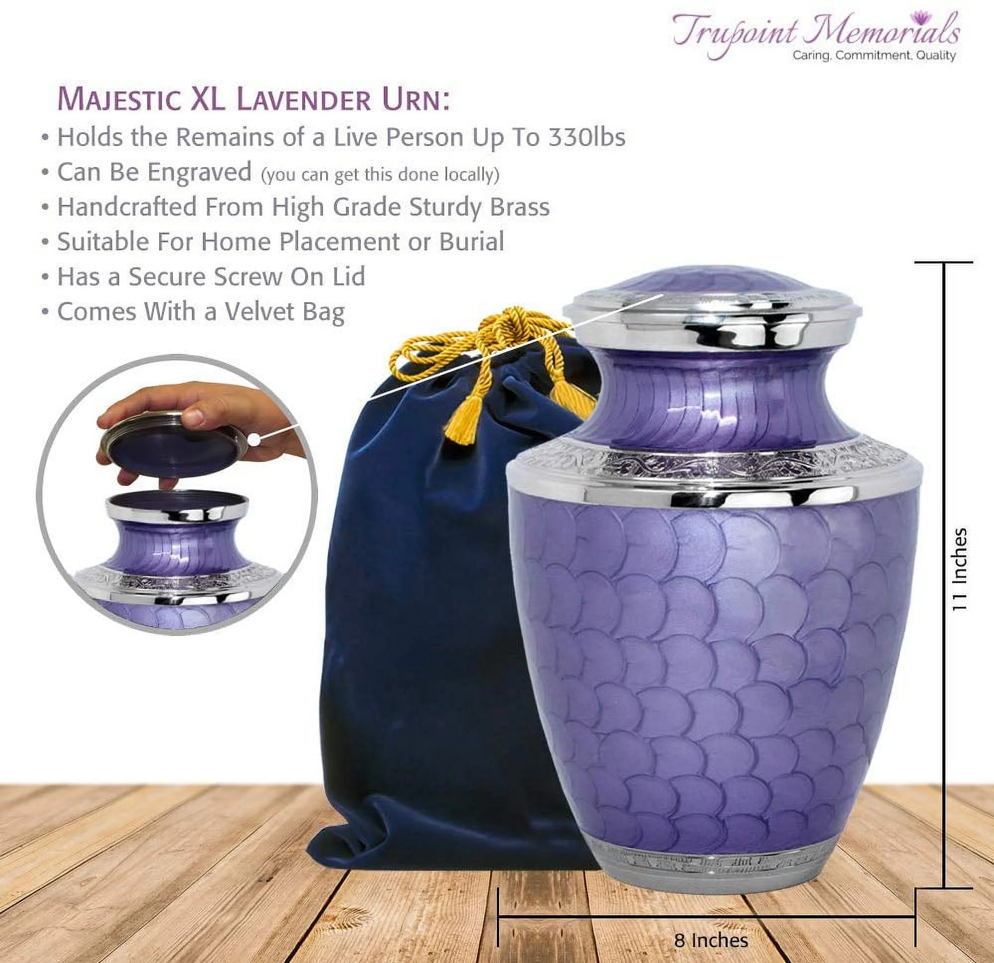 Trupoint Memorials Majestic Extra Large Lavender Adult Urn For Cremation Ashes in Home, For up to 330 lb Person with Velvet Bag - Curated Treasures Market