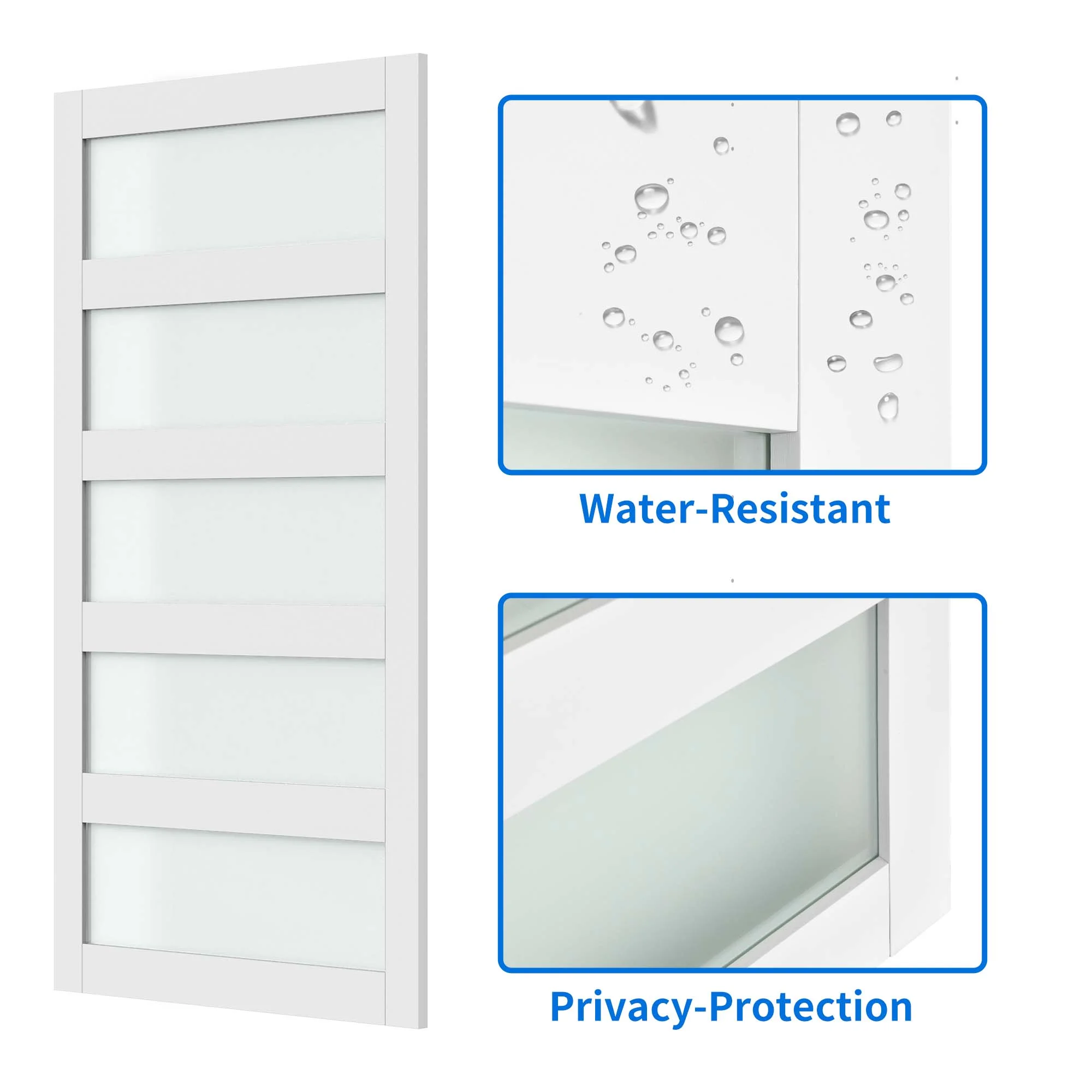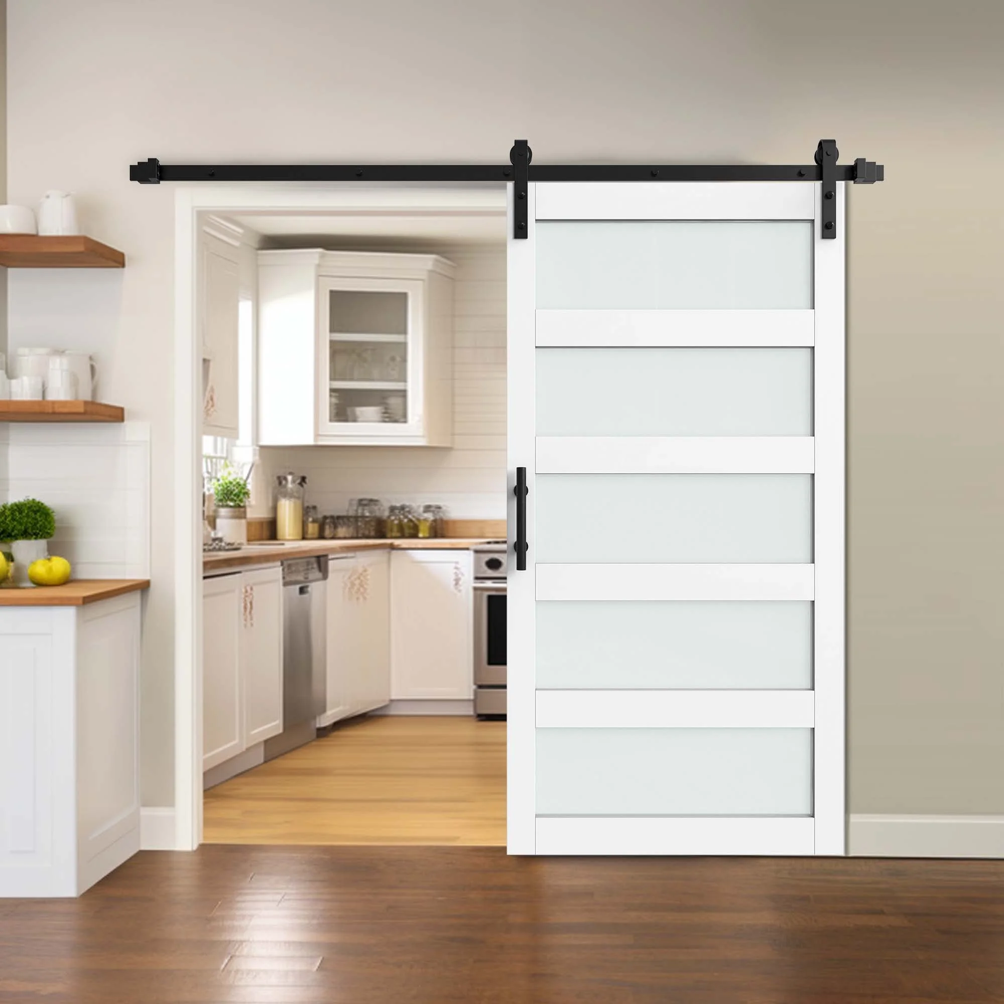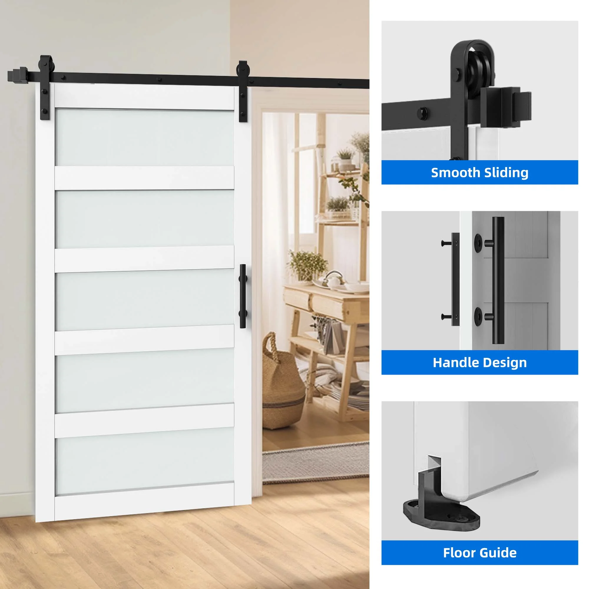 Dextrus 42"x 84" Sliding Barn Door, Single Track Sliding Barn Door with Frosted Glass Panels, Hardware Kit and Handle for Interior & Exterior Use, B Style-White - Curated Treasures Market