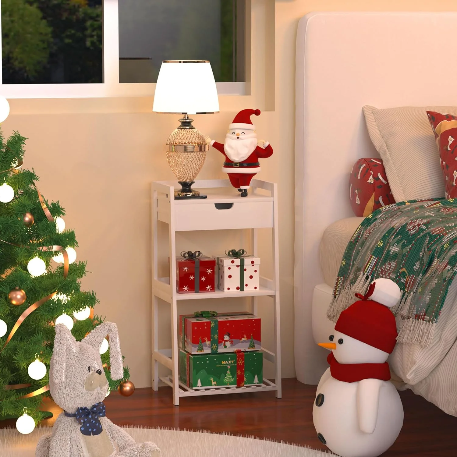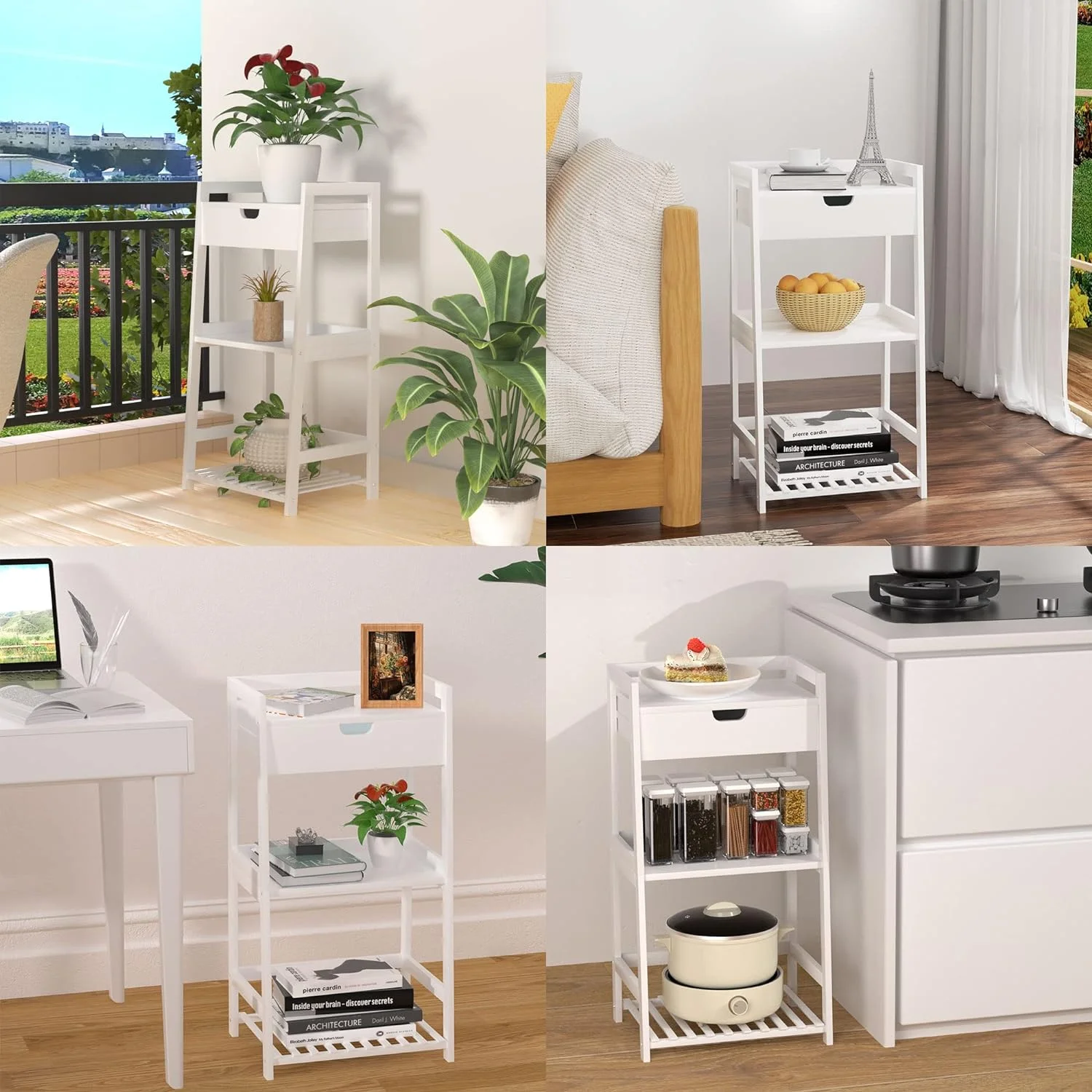 Bathroom Shelves, 3 Tier Ladder Shelf with Drawers, Bamboo Bookshelf Open Shelving, Nightstand Bookcase End Table Plant Stand for Living Room, Bedroom, Bathroom, Kitchen - Curated Treasures Market