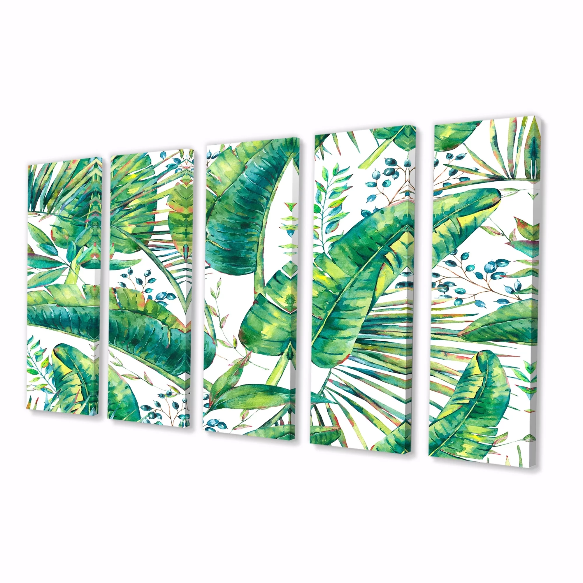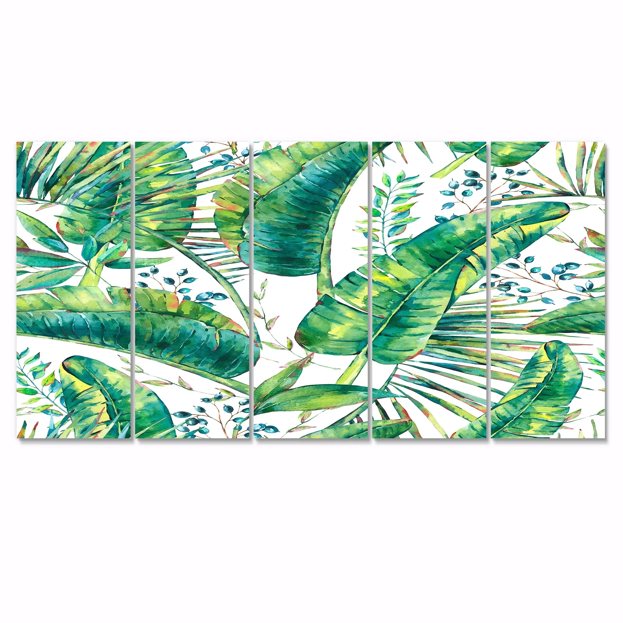 DESIGN ART Designart "Vintage Pattern Of Banana Leaves" Lake House Canvas Wall Art Print 60 in. wide x 32 in. high - 5 Panels Diamond Shape - Curated Treasures Market