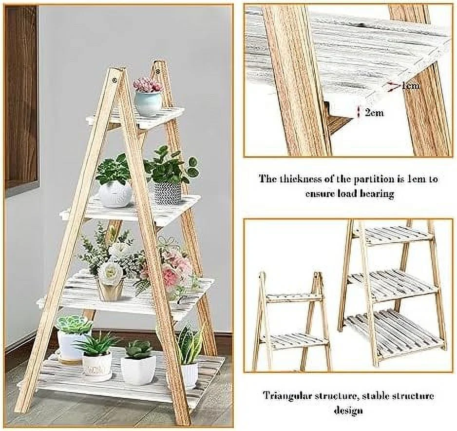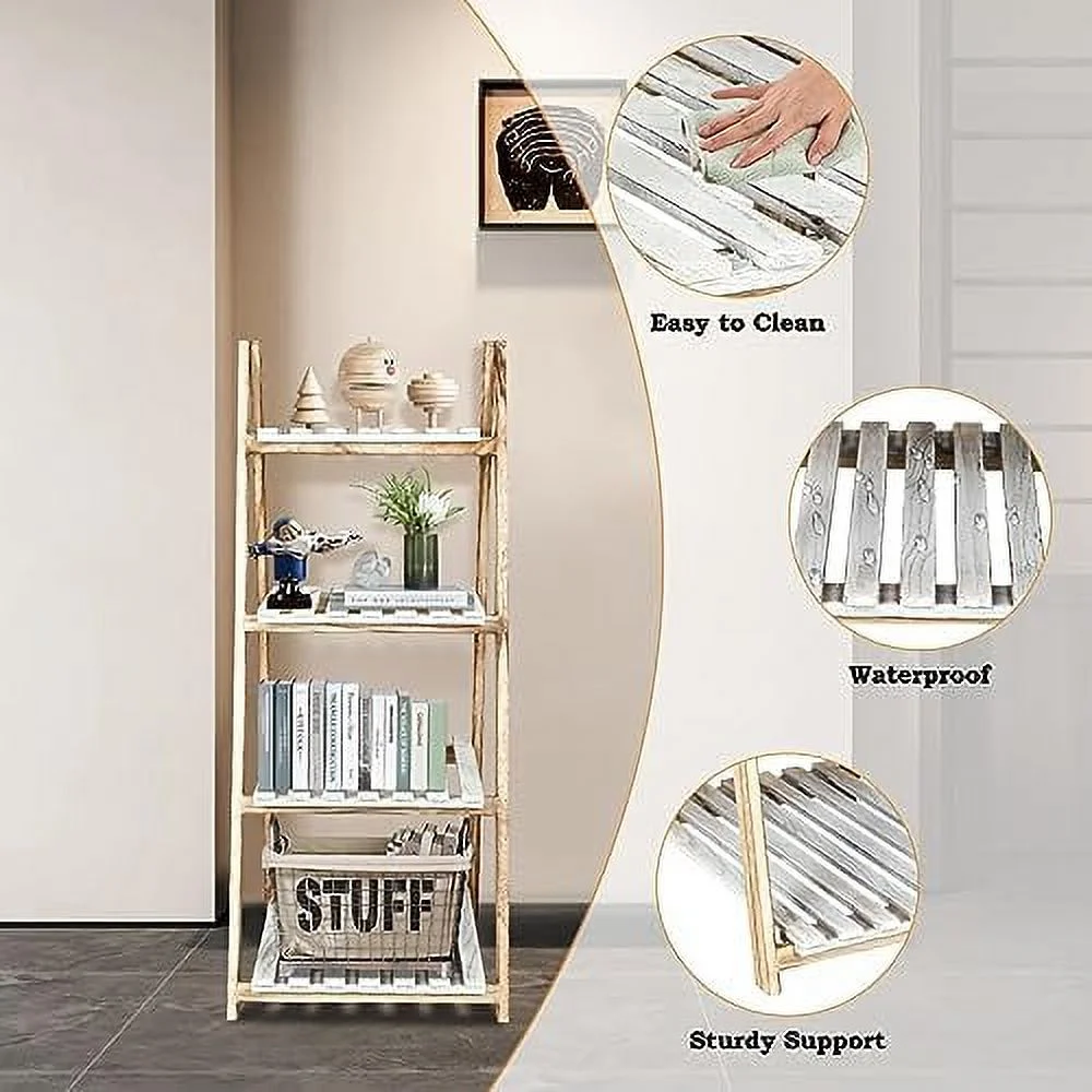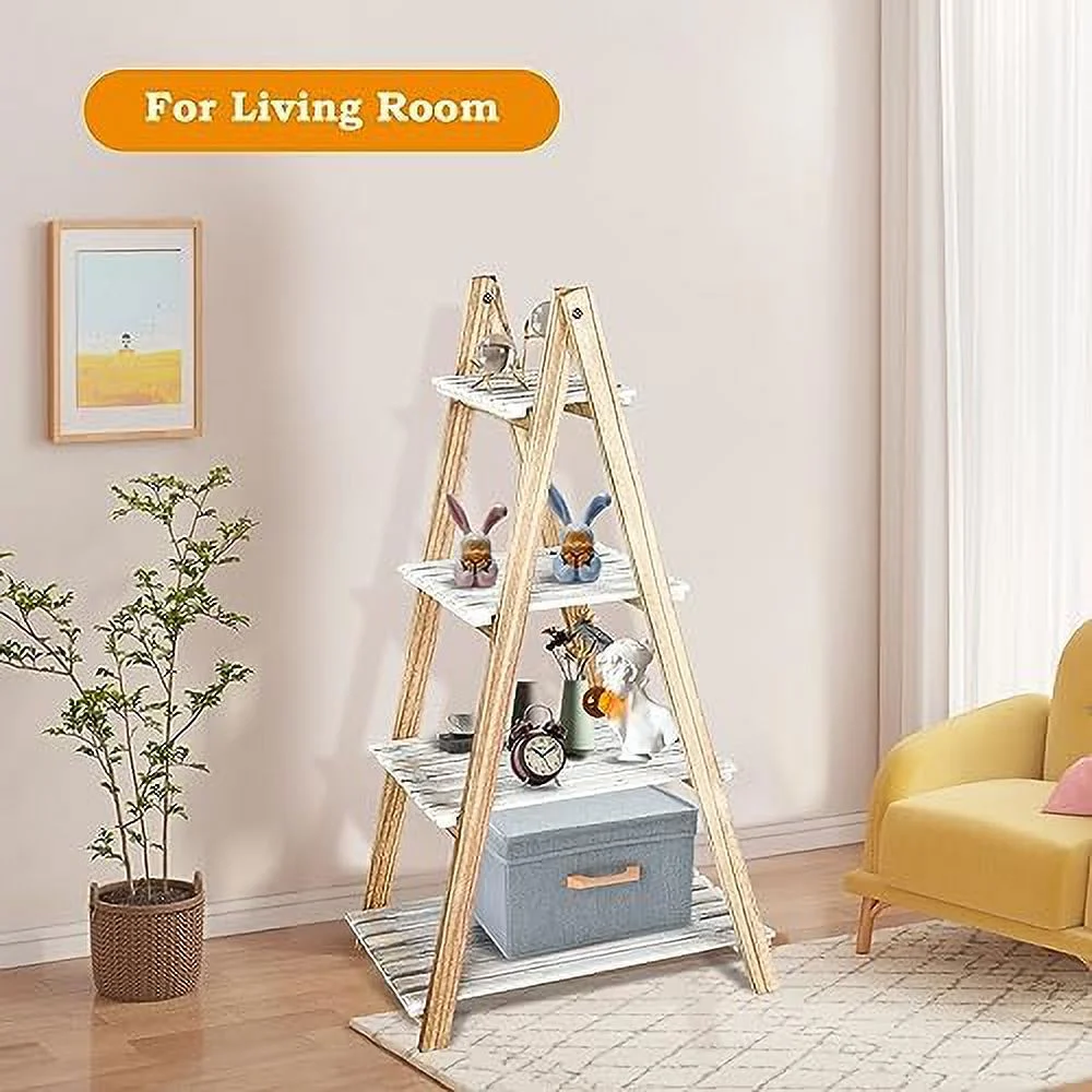 GVJMTKP TAG 3 Tier Ladder Wood -Shaped Bookshelves Ladder Bookcase Decorative Leaning Ladder Plant Display Rack Room Home Office Kitchen Bedroom Balcony - Curated Treasures Market