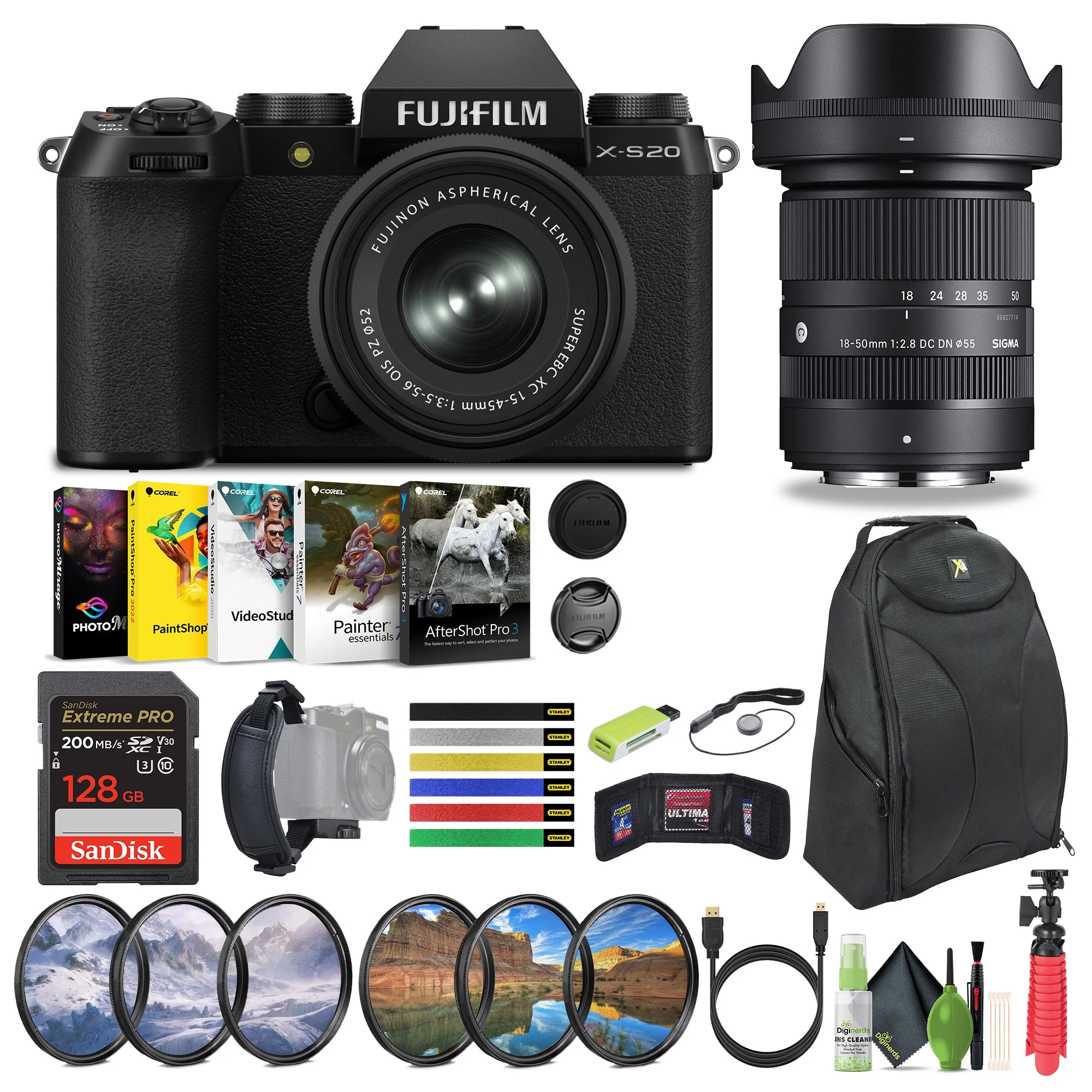 FUJIFILM X-S20 Mirrorless Camera With 15-45mm + Sigma 18-50mm f/2.8 DC DN Contemporary Lens - Curated Treasures Market