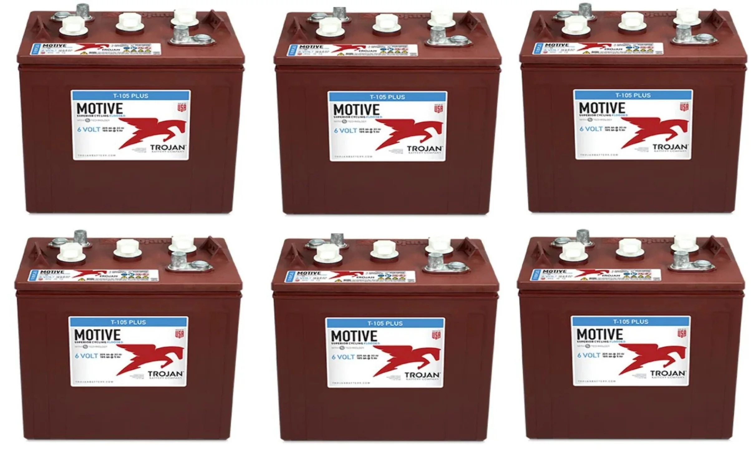 BATTERY GUYZ RECONDITIONED Trojan T-105 6v GROUP GC2 BATTERY , 225 AH, REFURBISHED-6 Pack - Curated Treasures Market
