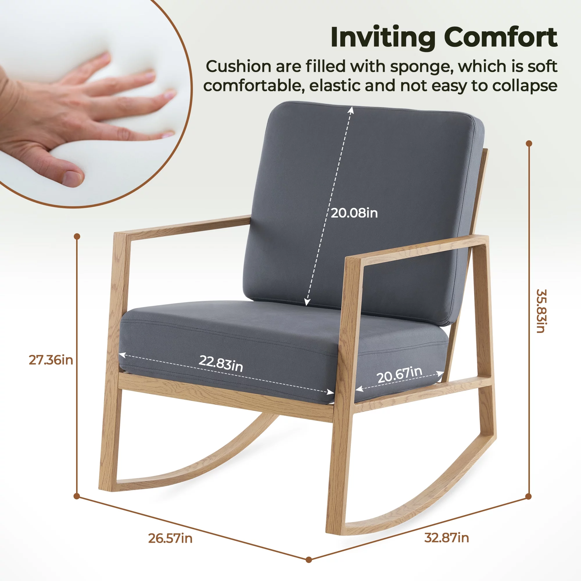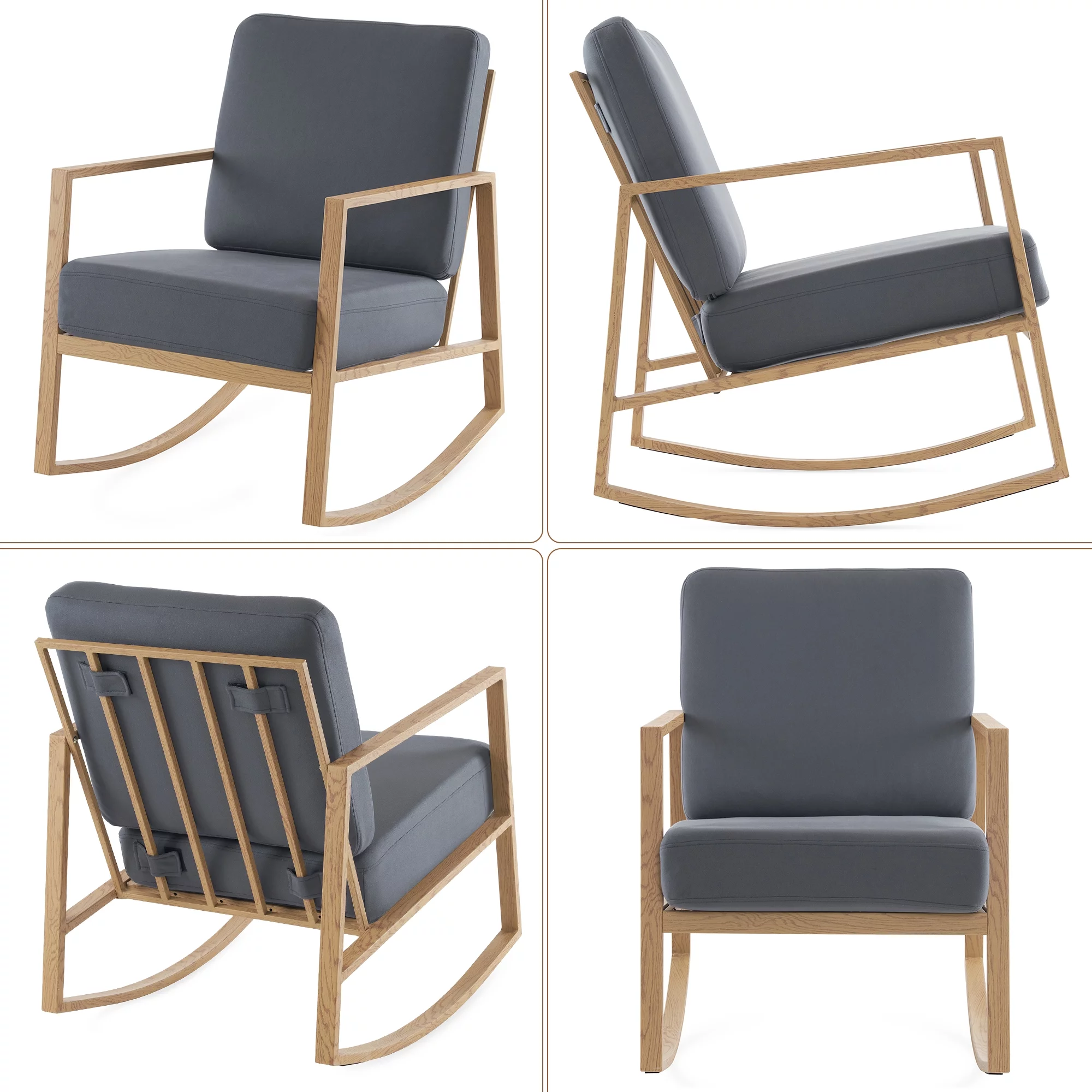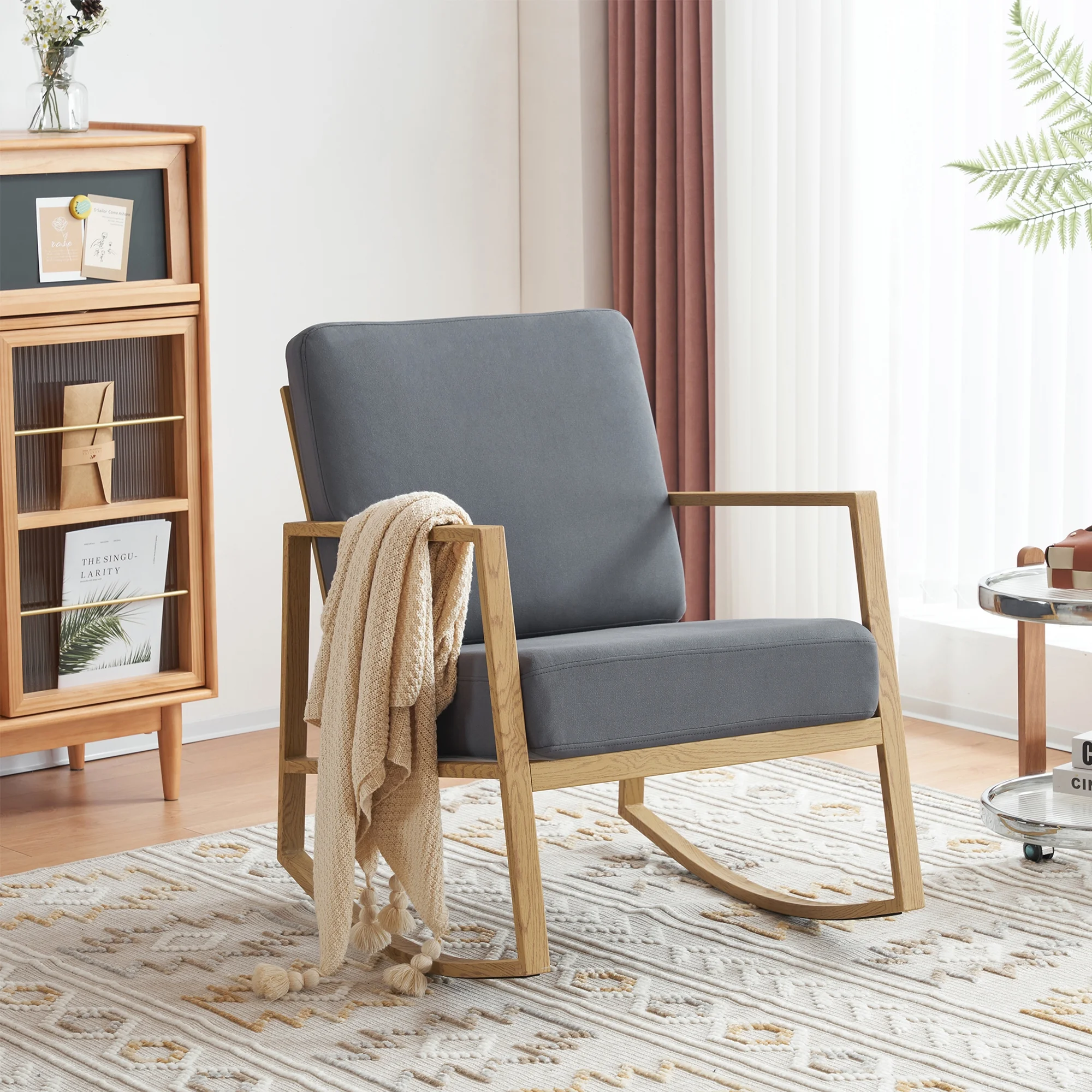 Livingroom Rocking Chair Glider Rocker for Nursery Upholstered Accent Chair Modern Armchair Cozy for Living Room Bedroom Offices Comfortable Chair Transfer Printed Wood Chair Gray - Curated Treasures Market