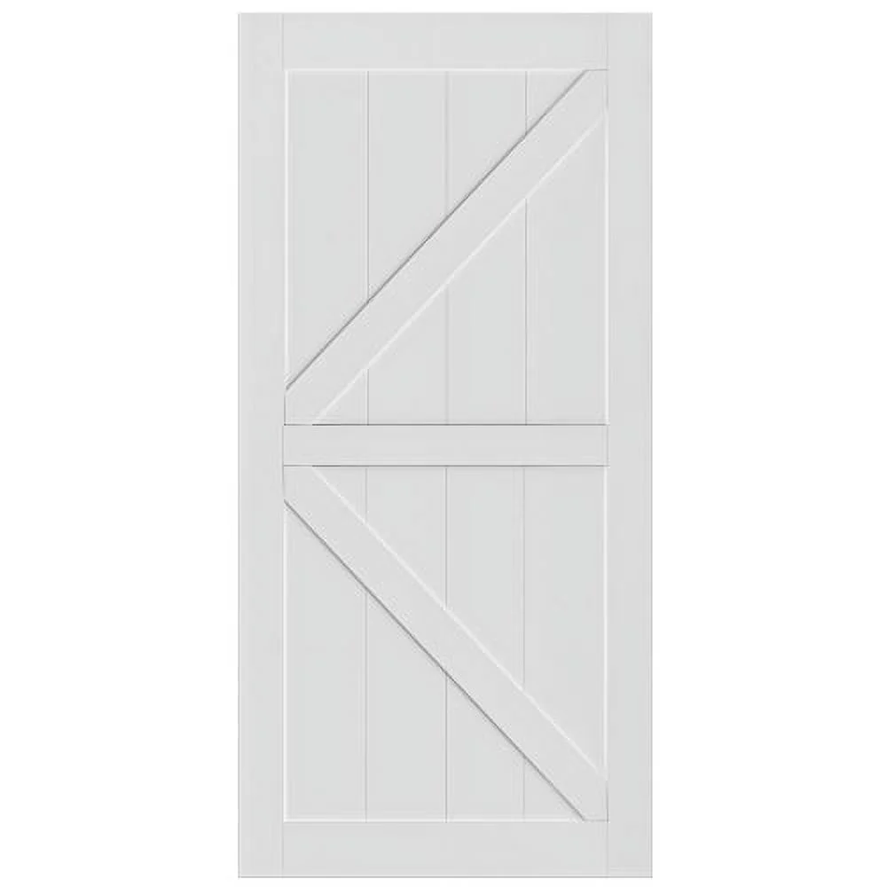 CRAZY ELF 28" x 84" "K" Style Wood Primed Standard Barn Door Slab, DIY Unfinished Solid Wood Paneled Door, Interior Single Door Slab, Pre-Drilled Ready to Assemble - Curated Treasures Market