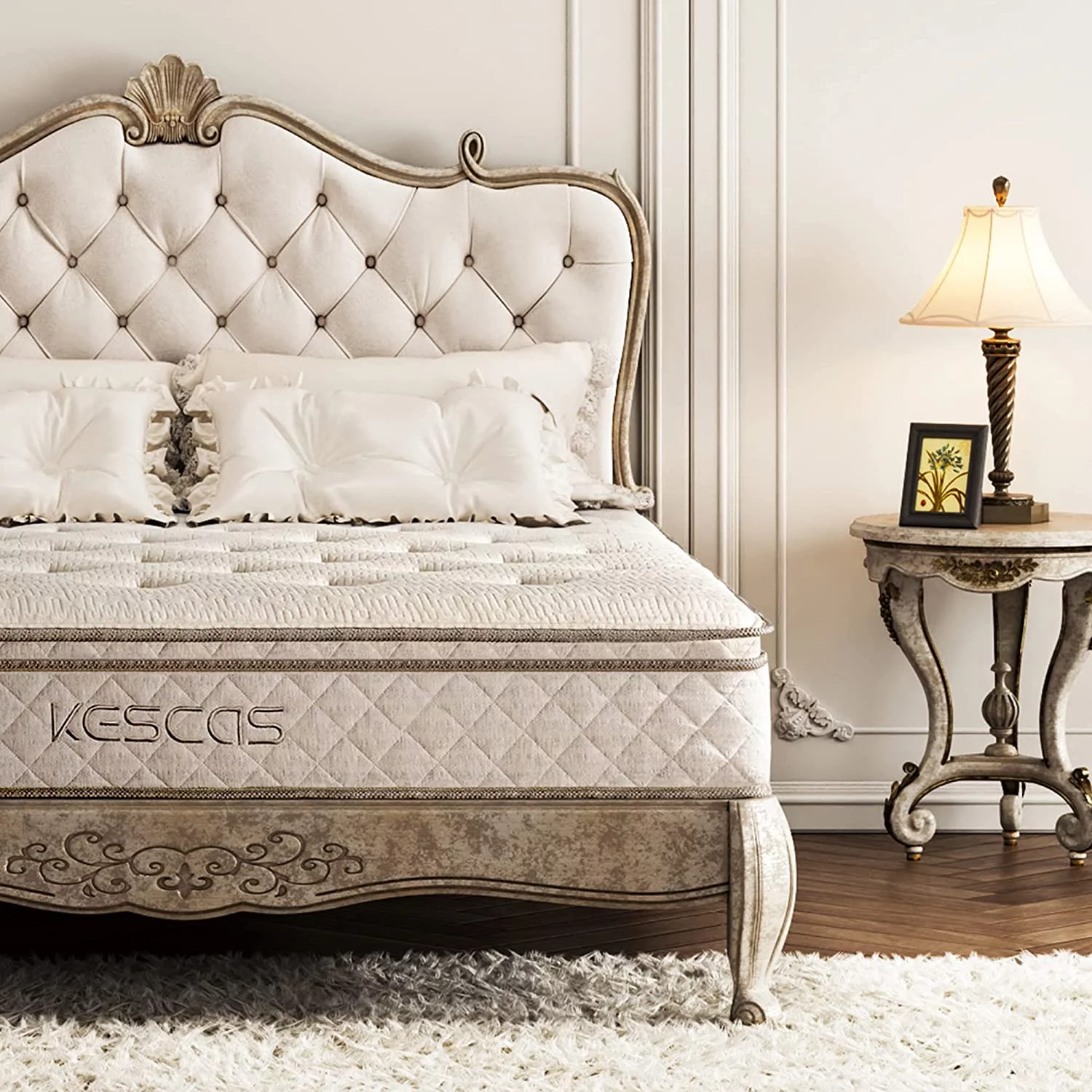 Twin Size Mattress, Kescas 12 inch Euro Top Linen Cover Innerspring Mattress, Pocket Spring Hybrid Memory Foam Mattresses with Medium Firm, Plush Yet Supportive - Curated Treasures Market