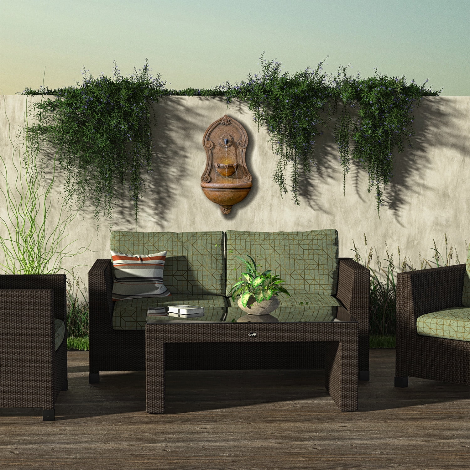 Alpine Corporation Wall Tiering Fountain w/ LED Lights, 32 Inch Tall - Curated Treasures Market