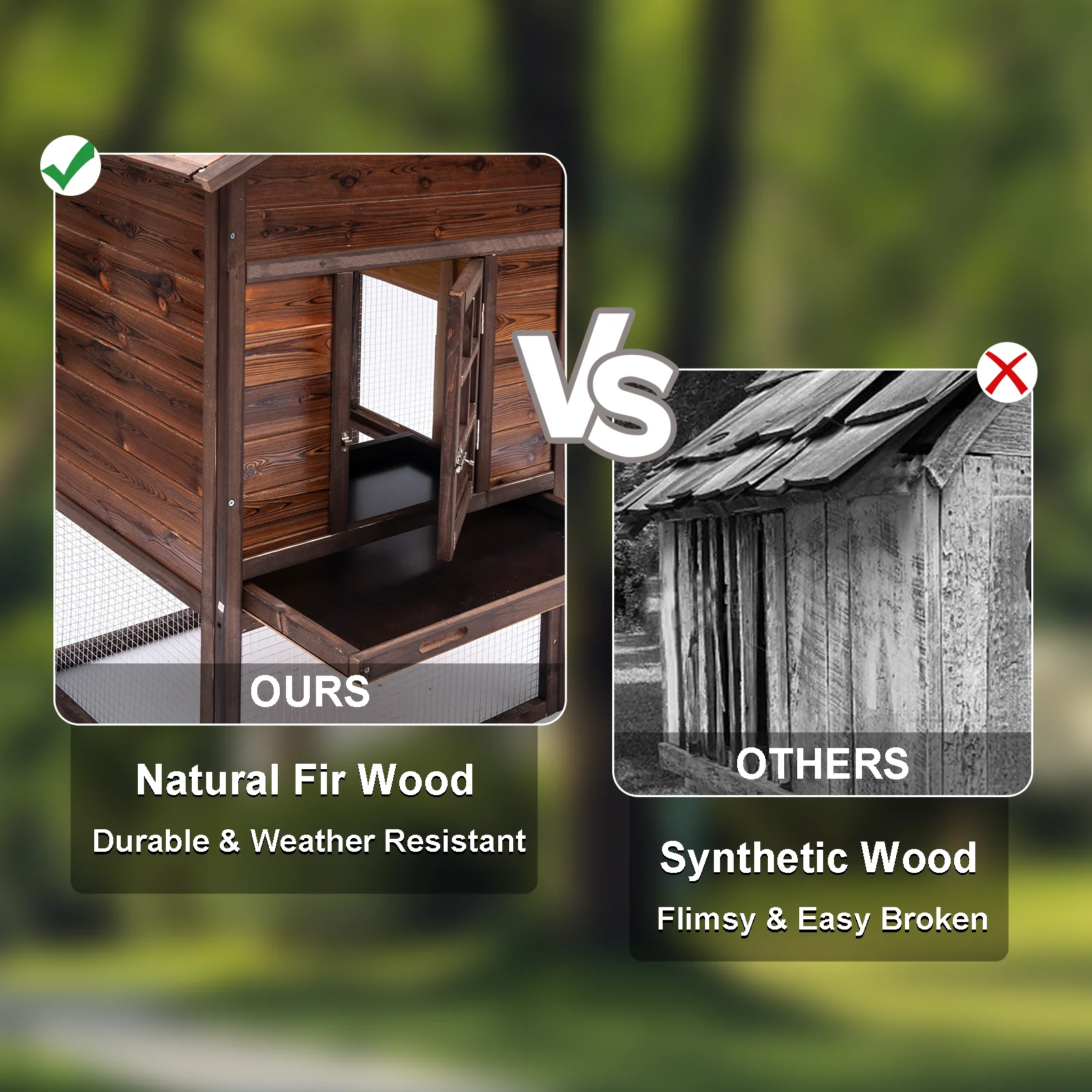 TANGJEAMER Wooden Chicken Coop Large Outdoor Hen House with Nest Box Poultry Cage Rabbit Hutch 80''- Waterproof UV Panel Brown - Curated Treasures Market