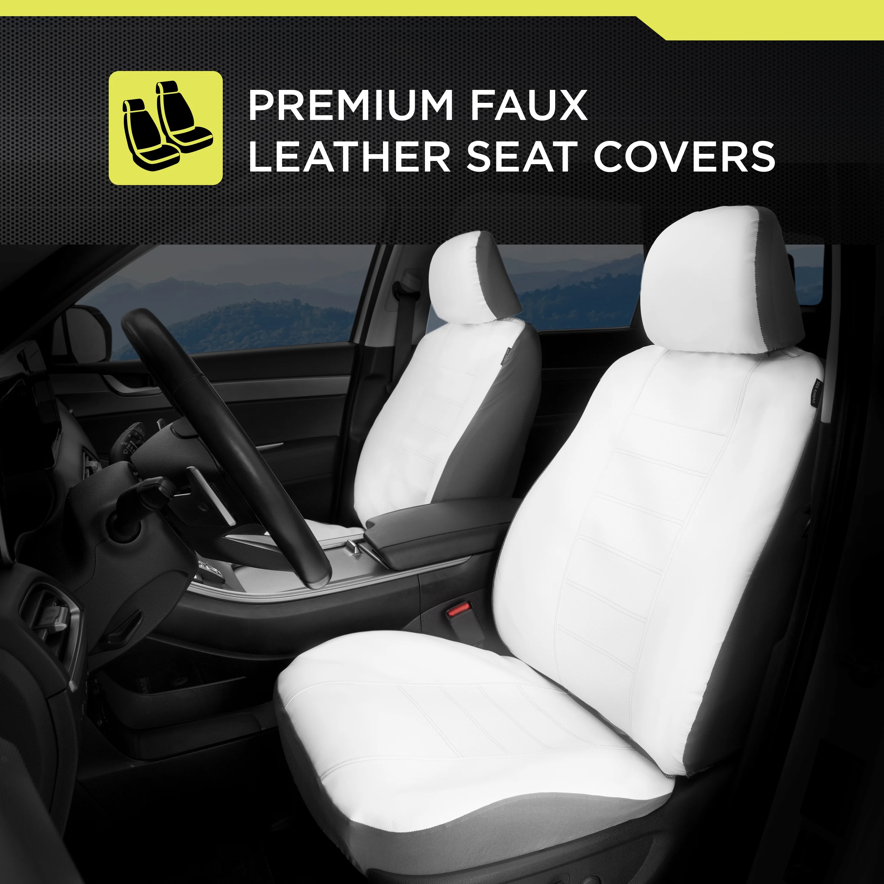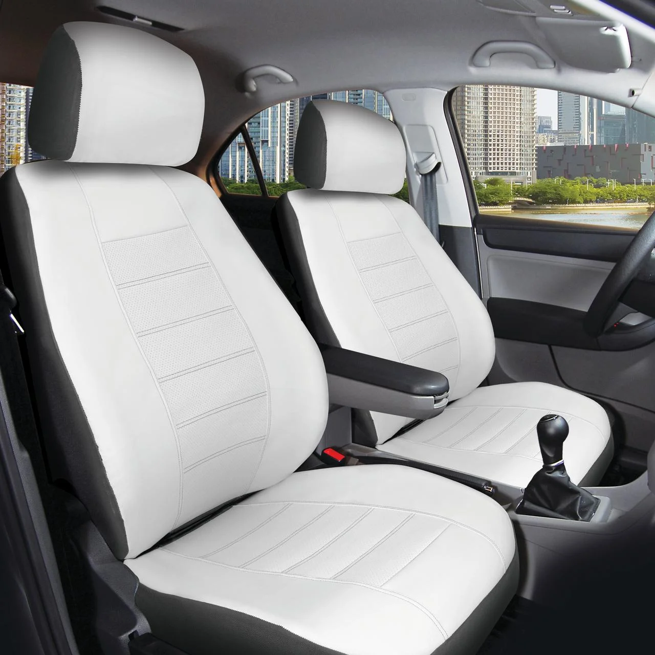 Auto Drive Sport White Faux Leather Seat Cover for Cars-2 Pack Universal Fit - Curated Treasures Market