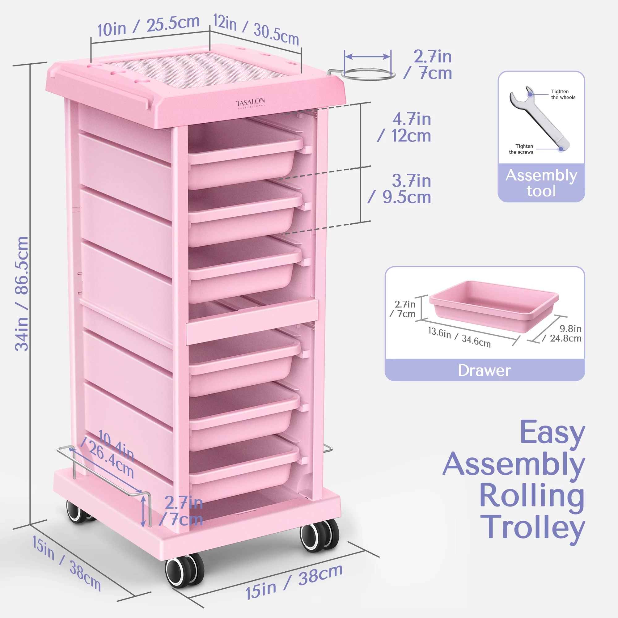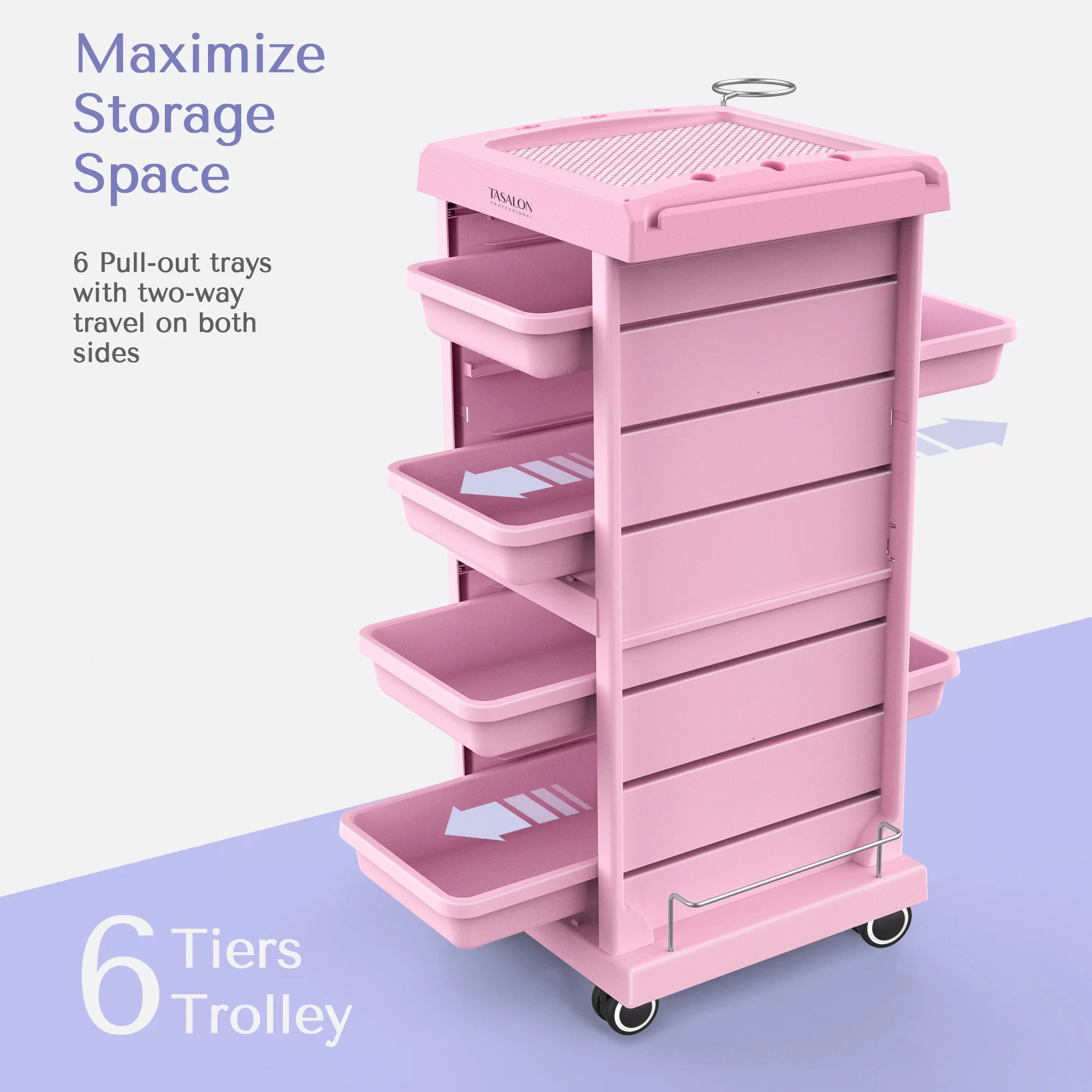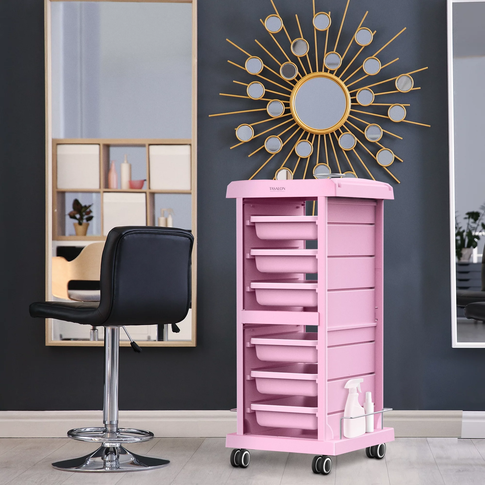 TASALON Upgrade Salon Trolley Cart with Wheels for Salon Station, 6 Drawer Salon Rolling Cart for Extra Storage, Multipurpose Salon Cart, Beauty Cart, Tattoo Cart, Hair Cart for Hair Stylist - Pink - Curated Treasures Market