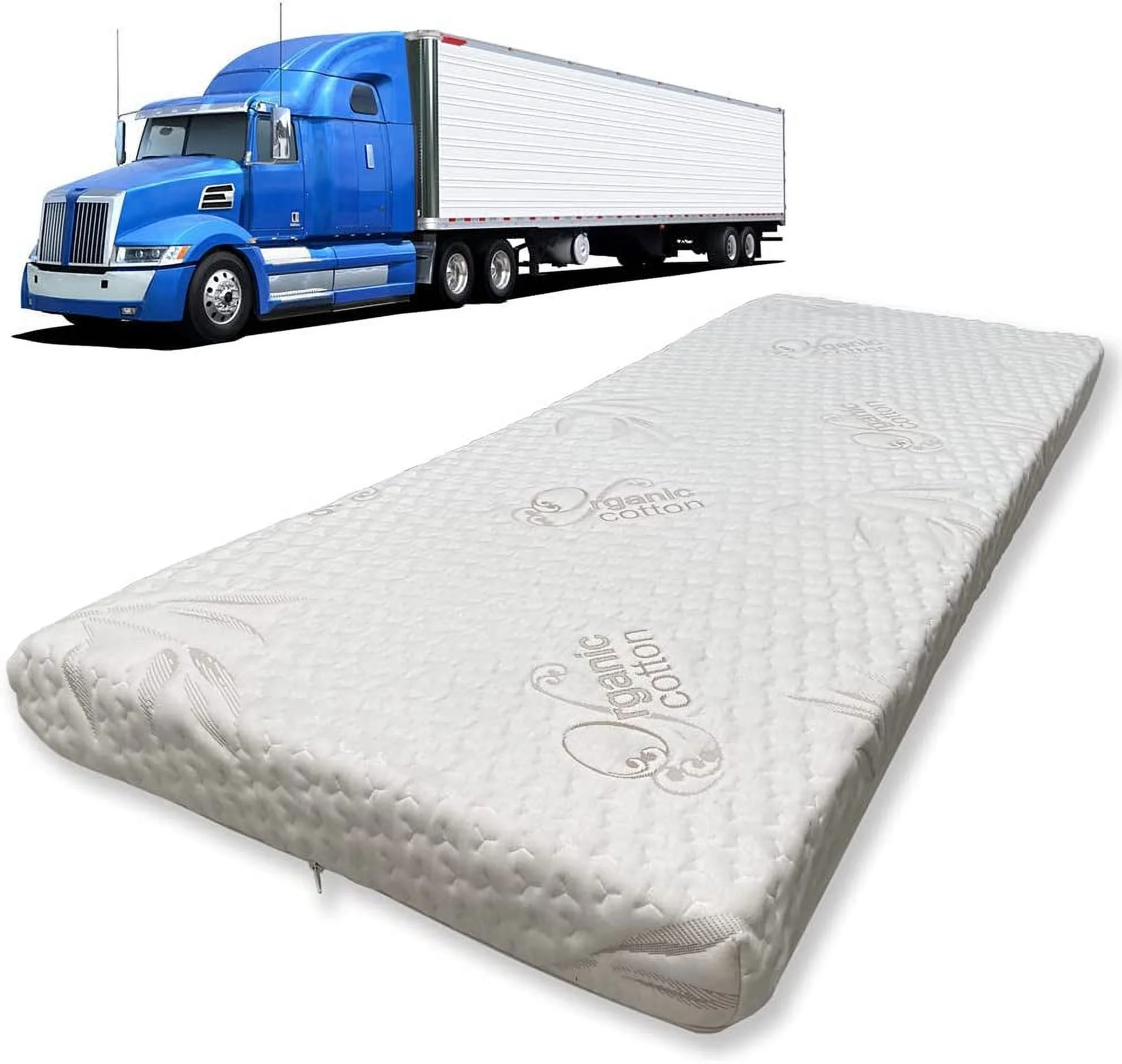X 3 X 79" Semi Truck Memory Foam Trucker Mattress, Washable Organic Cotton Cover, Heavy Duty And Durable, Comfortable, Made In - Curated Treasures Market